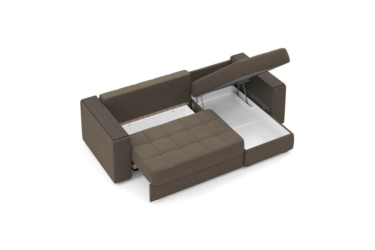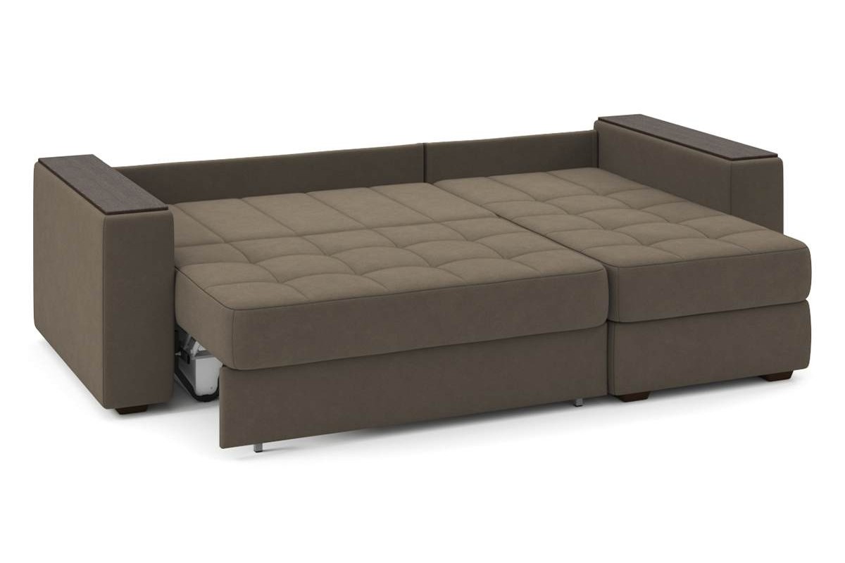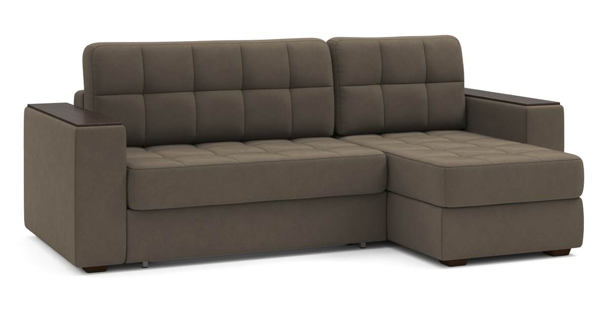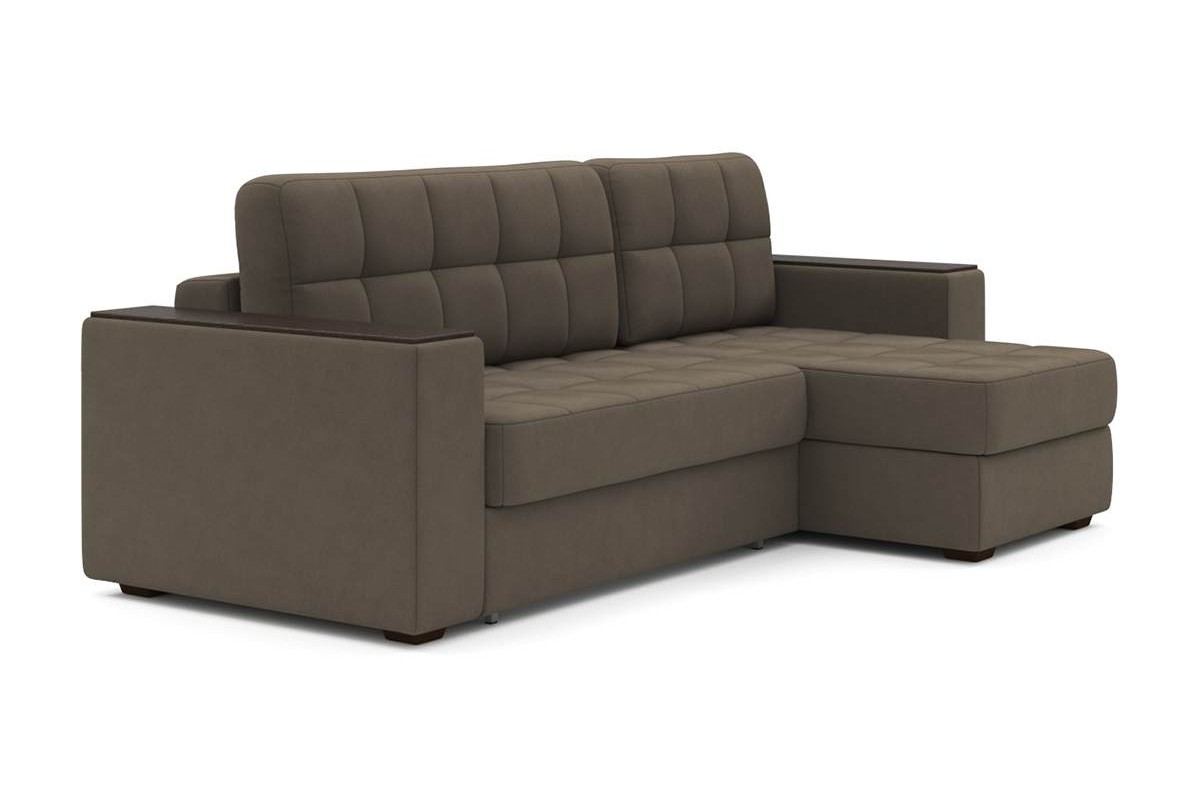Угловой диван Гринвич NEXT 22 узкие подлокотники декор венге тик-так велюр коричневый 256х100х160 металлокаркас артикул 10478387