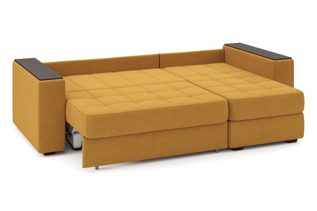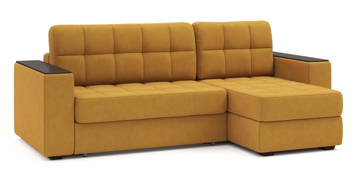 Угловой диван Гринвич NEXT 22 узкие подлокотники декор венге тик-так велюр желтый 256х100х160 металлокаркас артикул 10478388