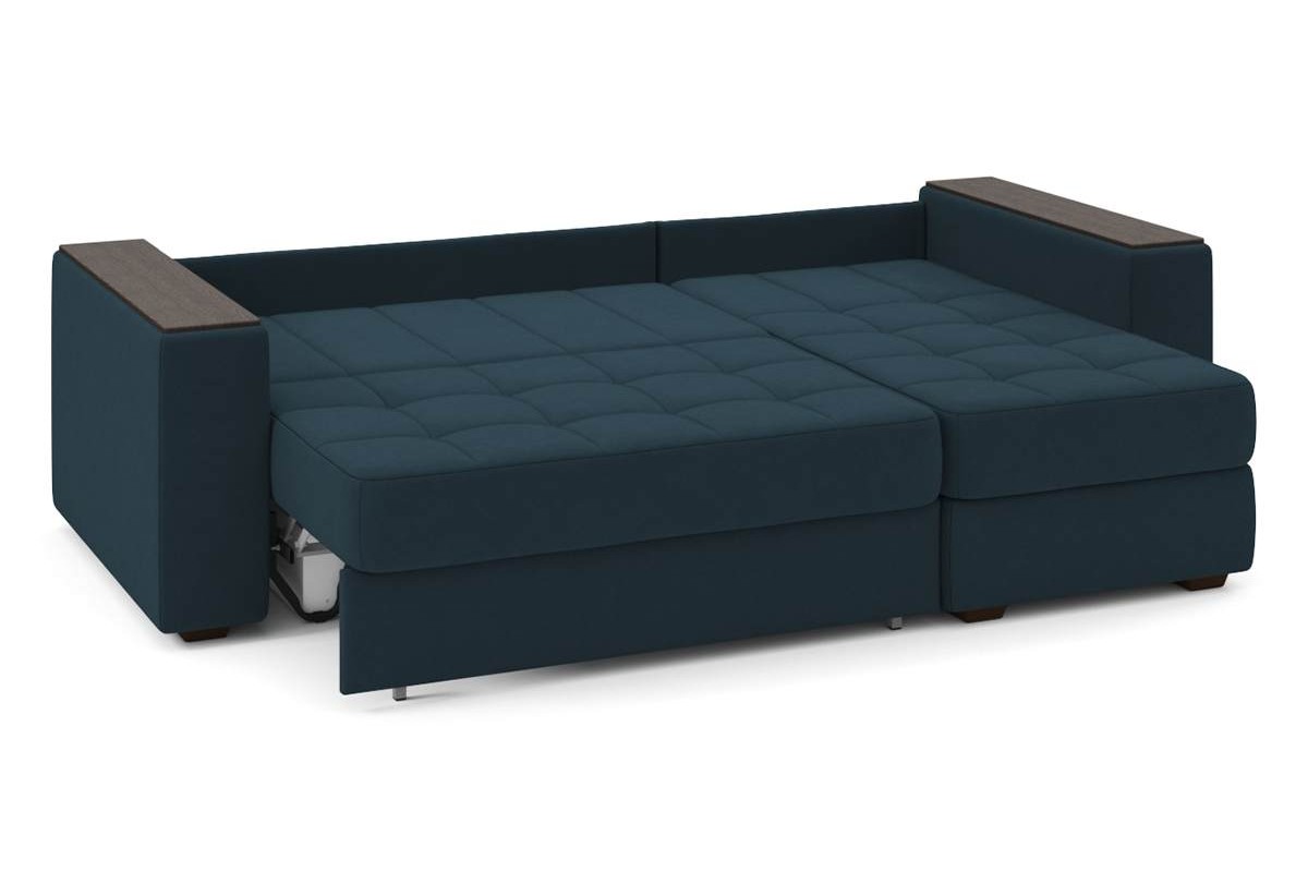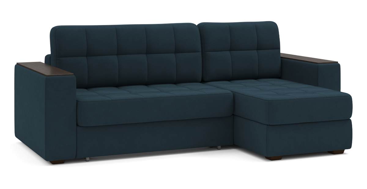 Угловой диван Гринвич NEXT 22 узкие подлокотники декор венге тик-так велюр синий 256х100х160 металлокаркас артикул 10478392