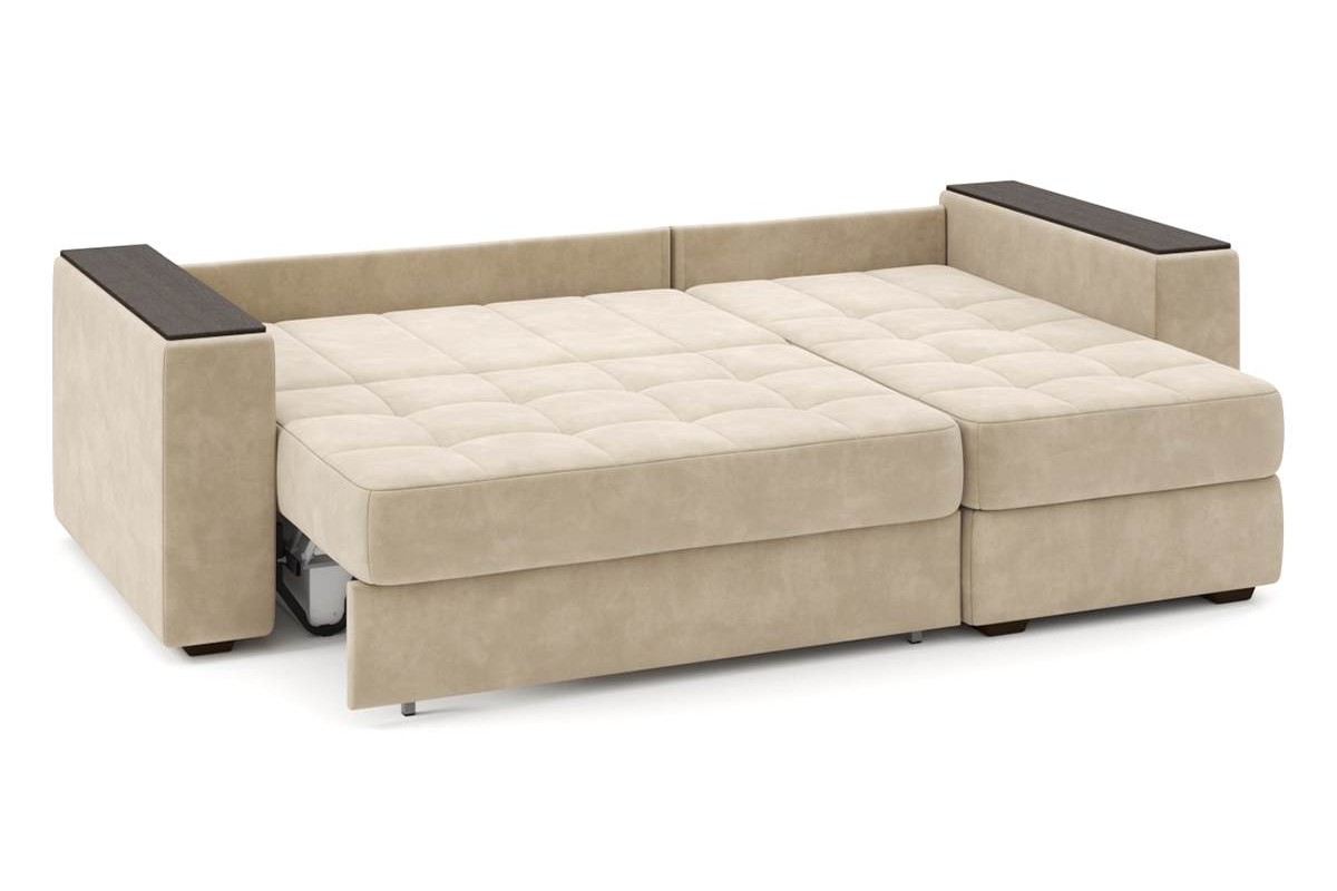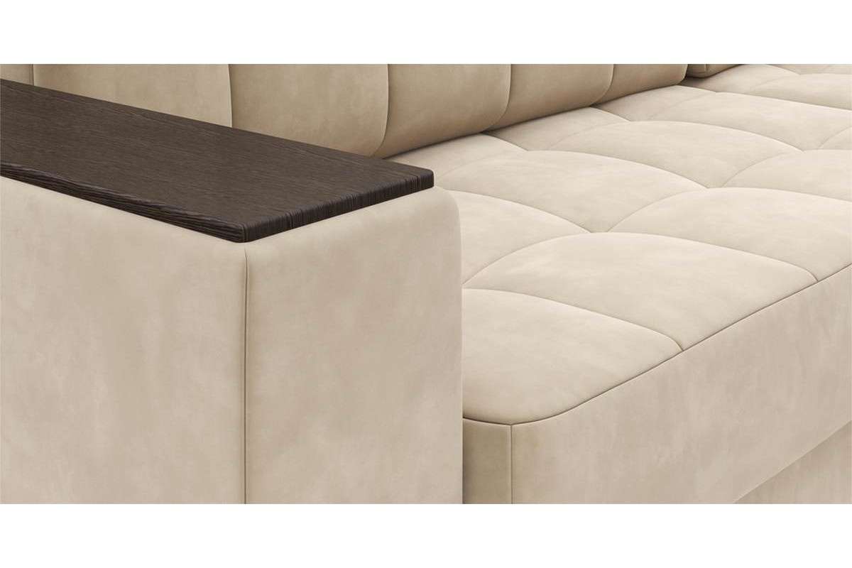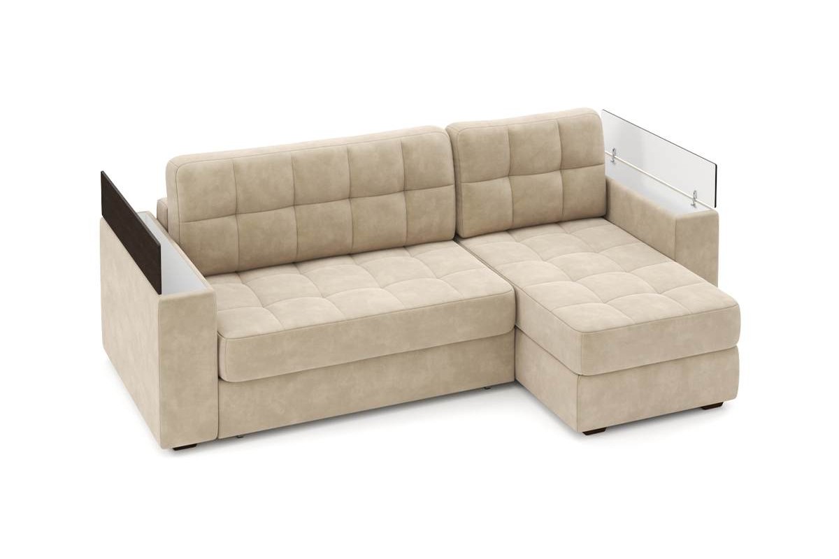 Угловой диван Гринвич NEXT 22 узкие подлокотники декор венге тик-так искусственная замша бежевый 256х100х160 металлокаркас артикул 10478393