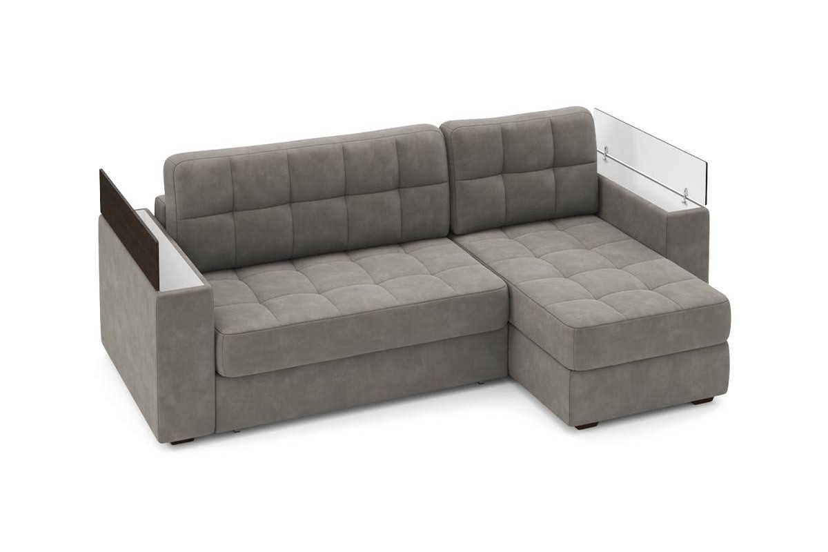 Угловой диван Гринвич NEXT 22 узкие подлокотники декор венге тик-так искусственная замша коричневый 256х100х160 металлокаркас артикул 10478394