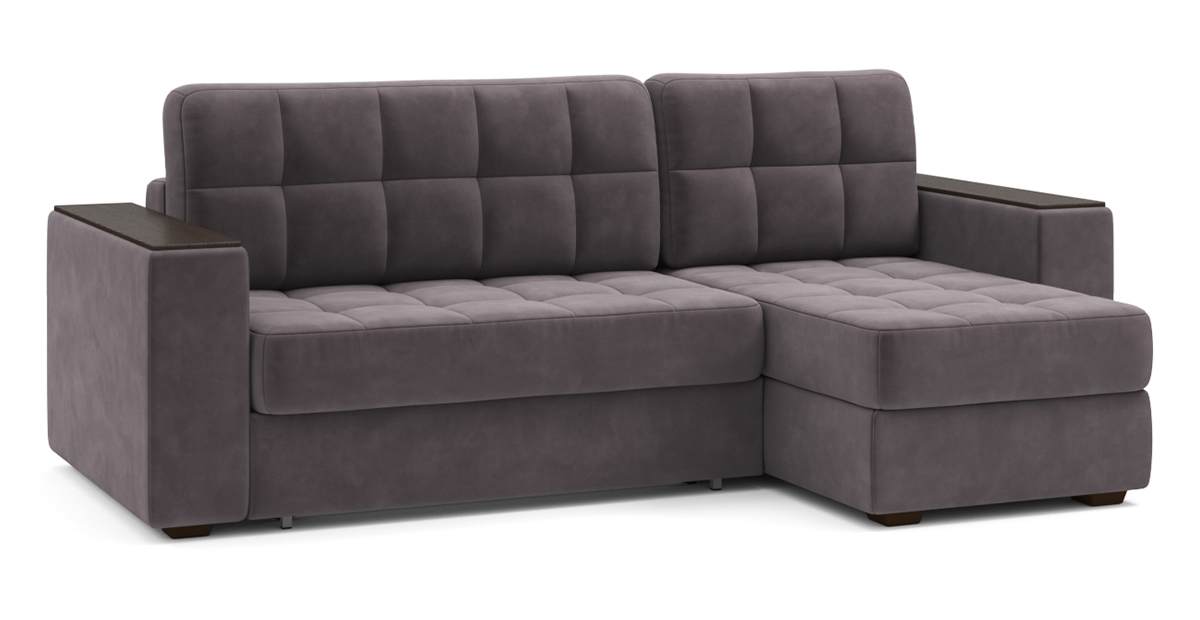 Угловой диван Гринвич NEXT 22 узкие подлокотники декор венге тик-так искусственная замша серый 256х100х160 металлокаркас артикул 10478395