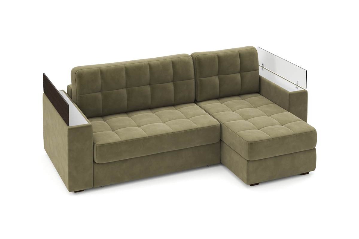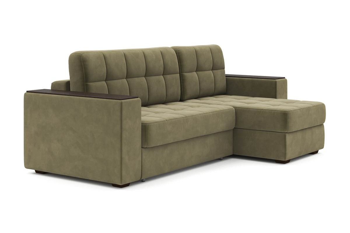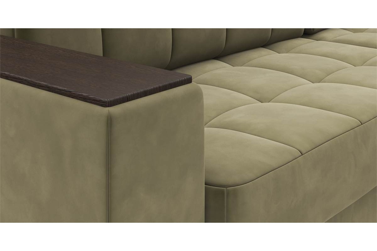 Угловой диван Гринвич NEXT 22 узкие подлокотники декор венге тик-так искусственная замша зеленый 256х100х160 металлокаркас артикул 10478396