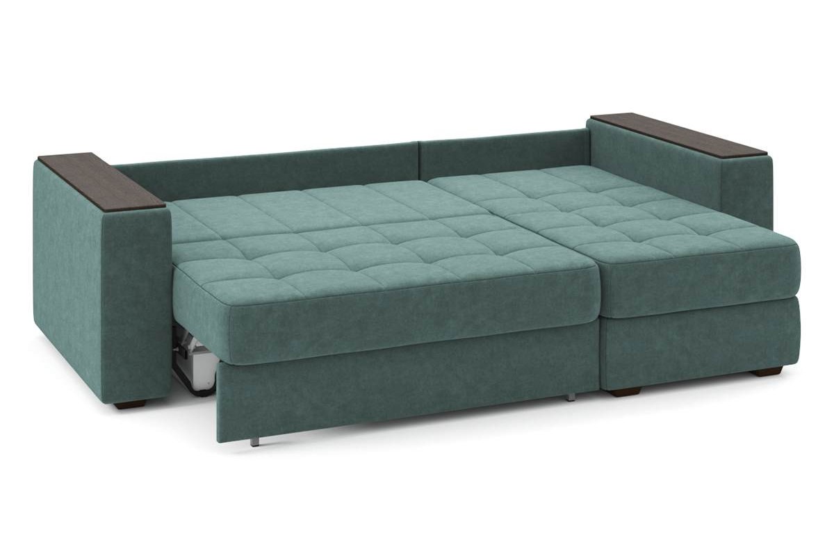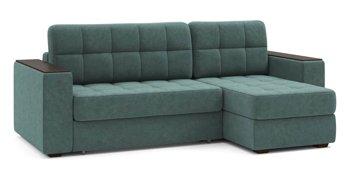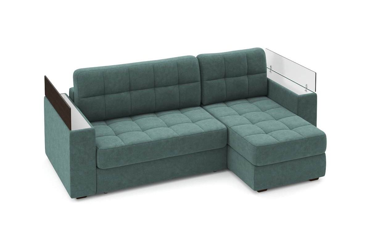 Угловой диван Гринвич NEXT 22 узкие подлокотники декор венге тик-так велюр зеленый 256х100х160 металлокаркас артикул 10478400