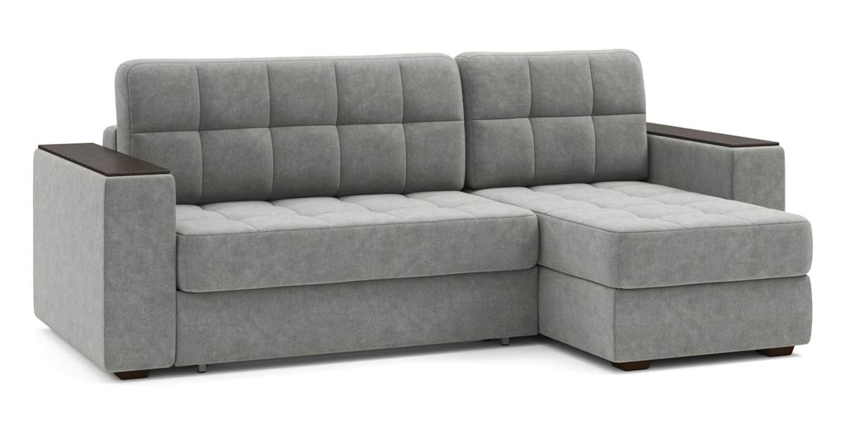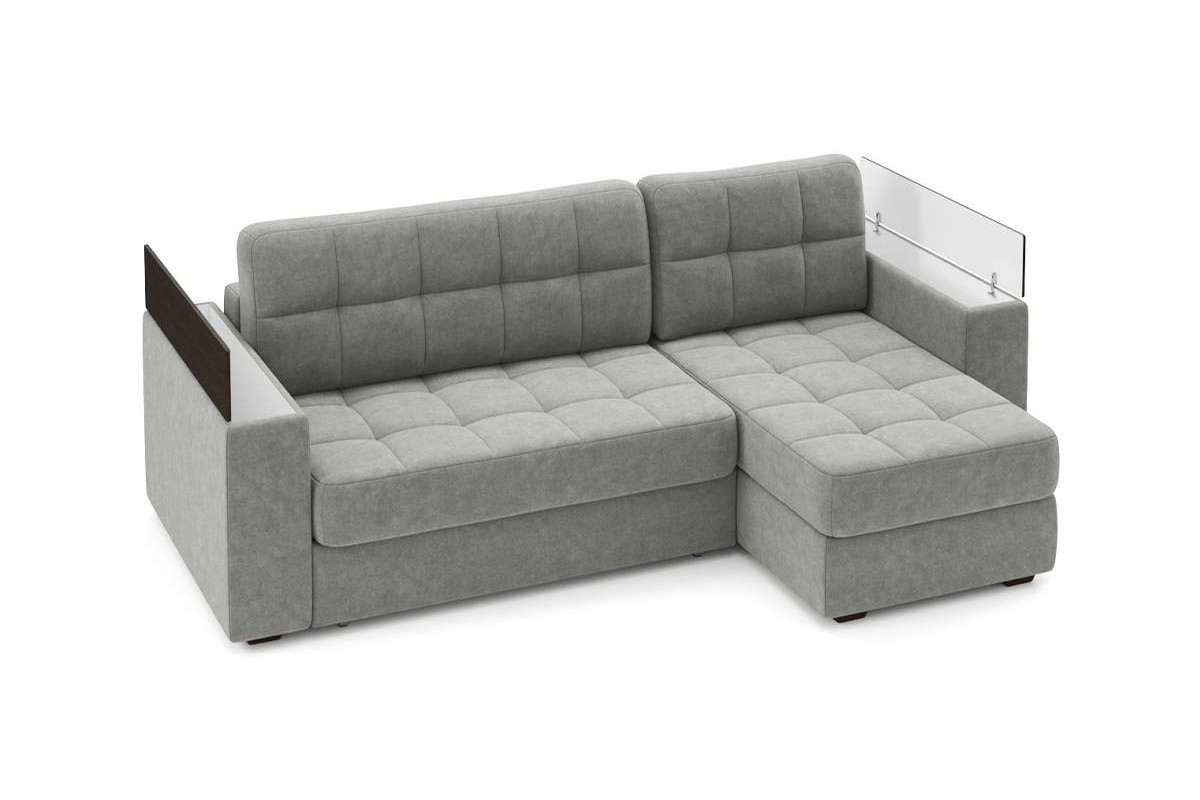 Угловой диван Гринвич NEXT 22 узкие подлокотники декор венге тик-так велюр серый 256х100х160 металлокаркас артикул 10478402