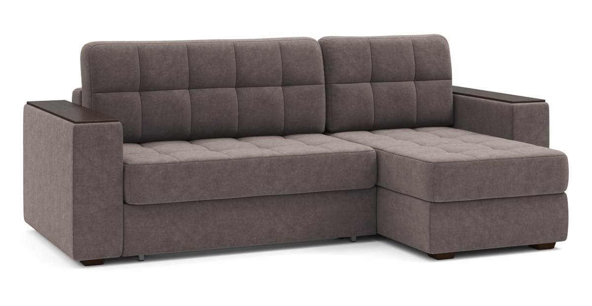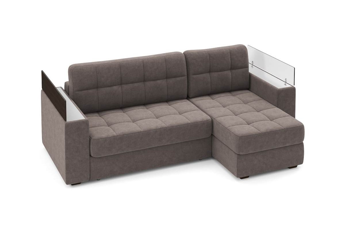 Угловой диван Гринвич NEXT 22 узкие подлокотники декор венге тик-так велюр коричневый 256х100х160 металлокаркас артикул 10478403