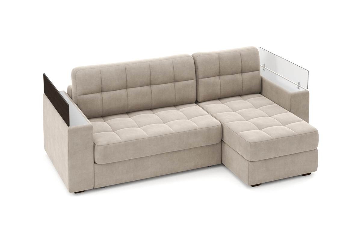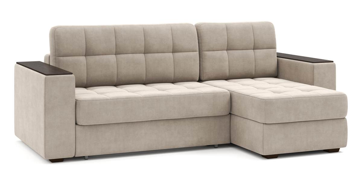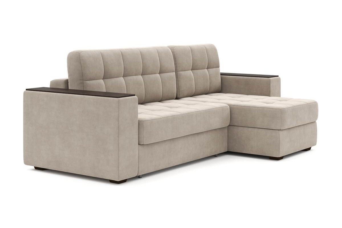 Угловой диван Гринвич NEXT 22 узкие подлокотники декор венге тик-так велюр бежевый 256х100х160 металлокаркас артикул 10478405
