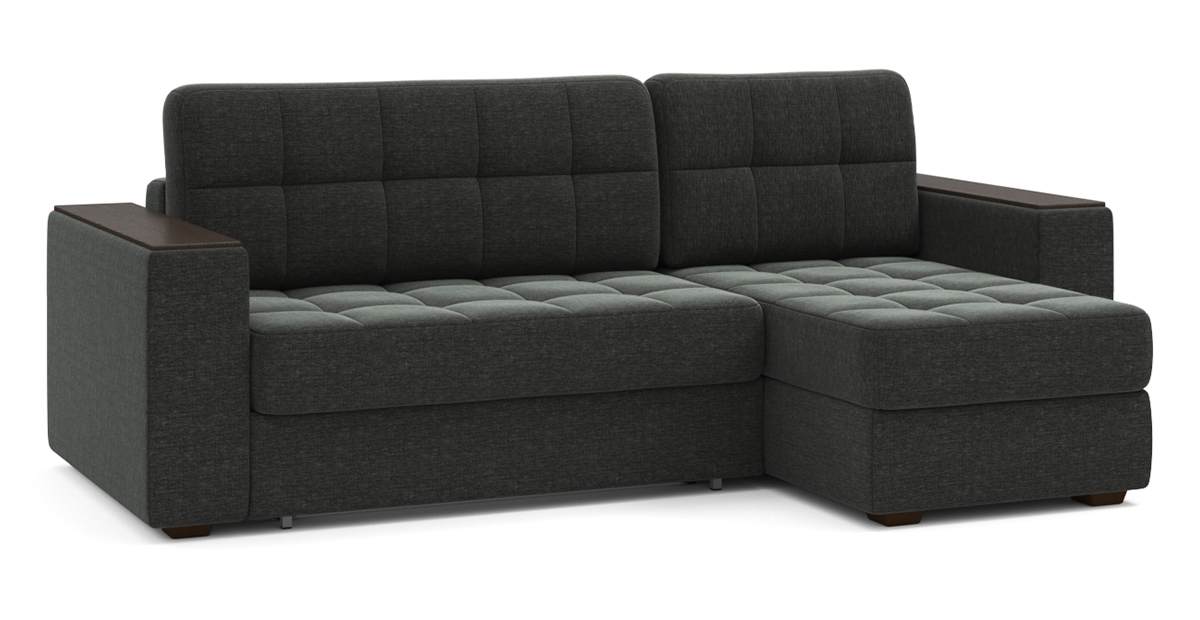 Угловой диван Гринвич NEXT 22 узкие подлокотники декор венге тик-так шенилл серый 256х100х160 металлокаркас артикул 10478422