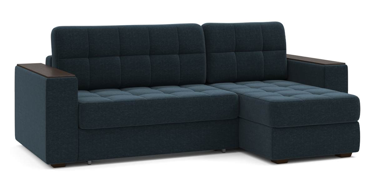 Угловой диван Гринвич NEXT 22 узкие подлокотники декор венге тик-так шенилл синий 256х100х160 металлокаркас артикул 10478424