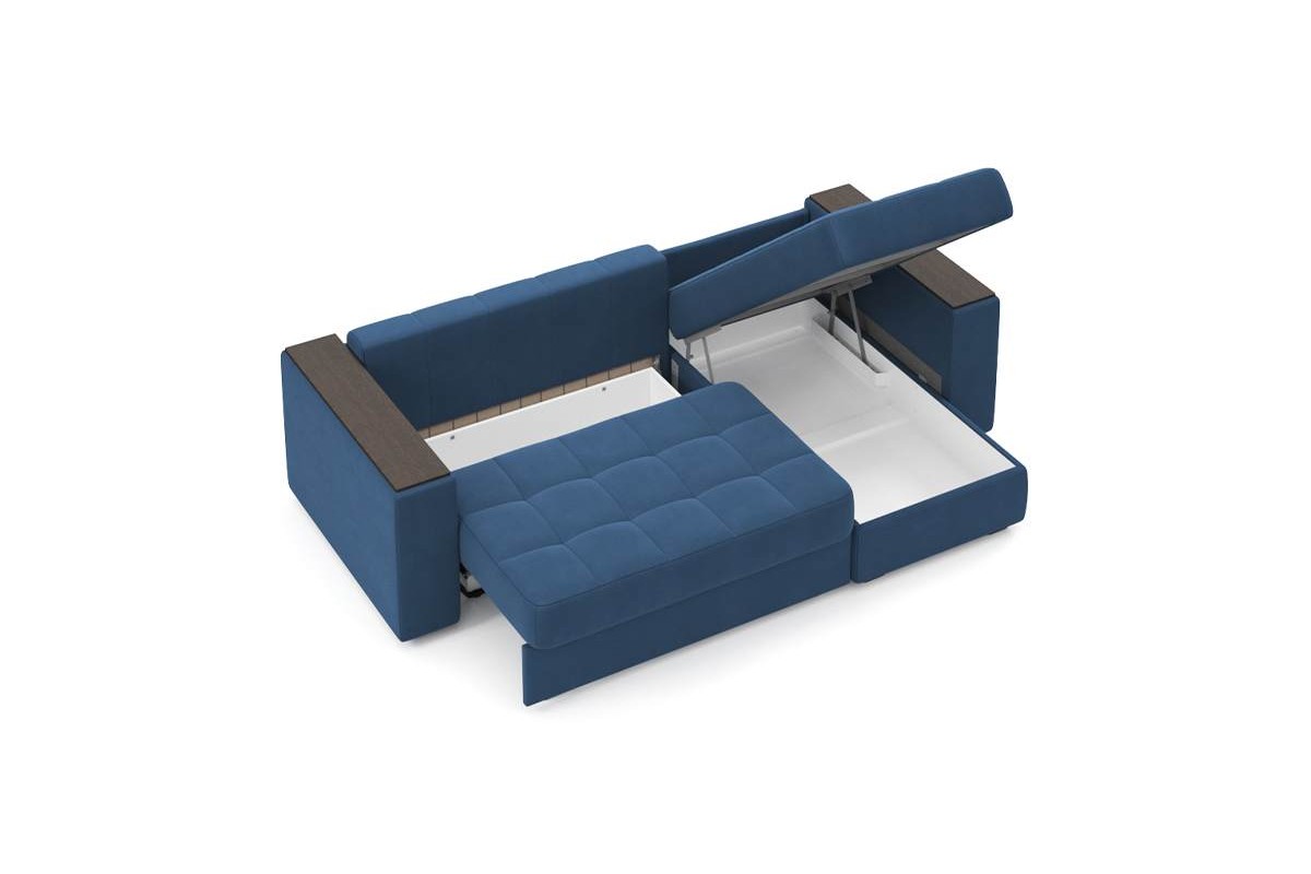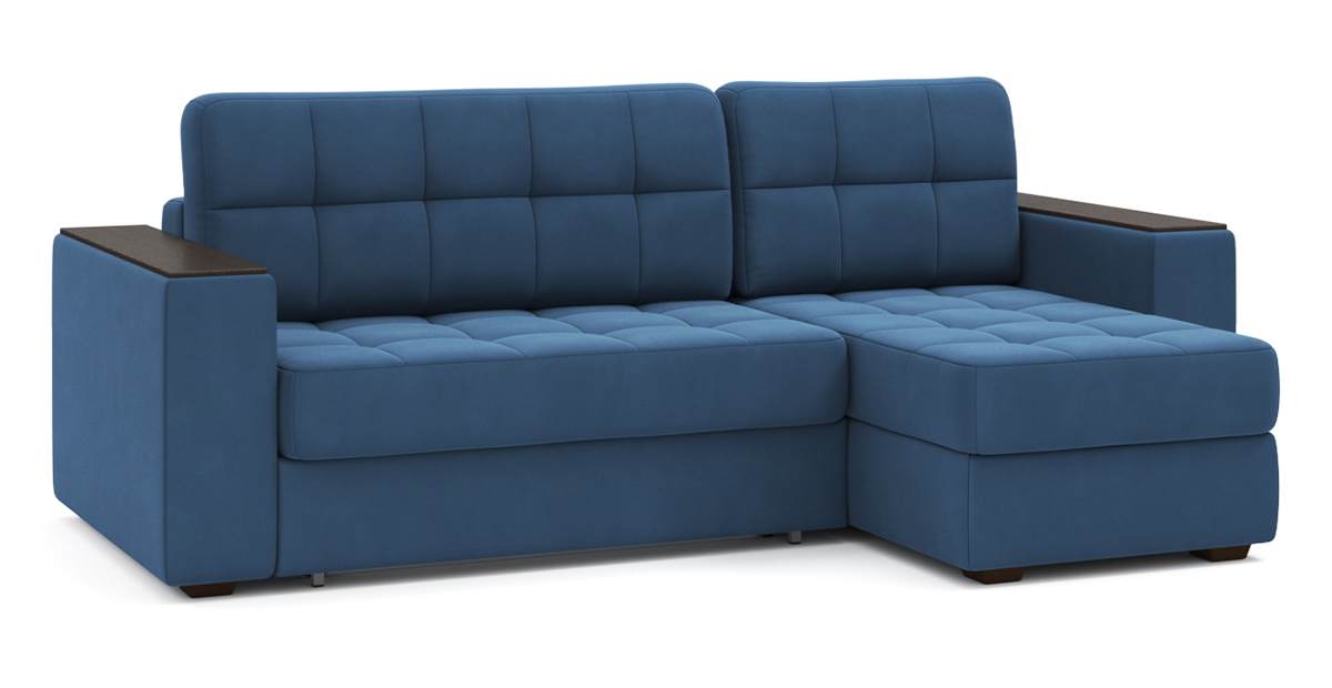 Угловой диван Гринвич NEXT 22 узкие подлокотники декор венге тик-так велюр синий 256х100х160 металлокаркас артикул 10478431