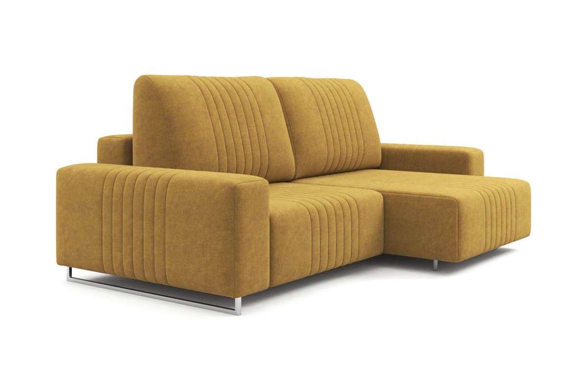 Угловой диван Хаммер NEXT мини с широкими подлокотниками тик-так велюр желтый 255х93х169 металлокаркас артикул 10408122