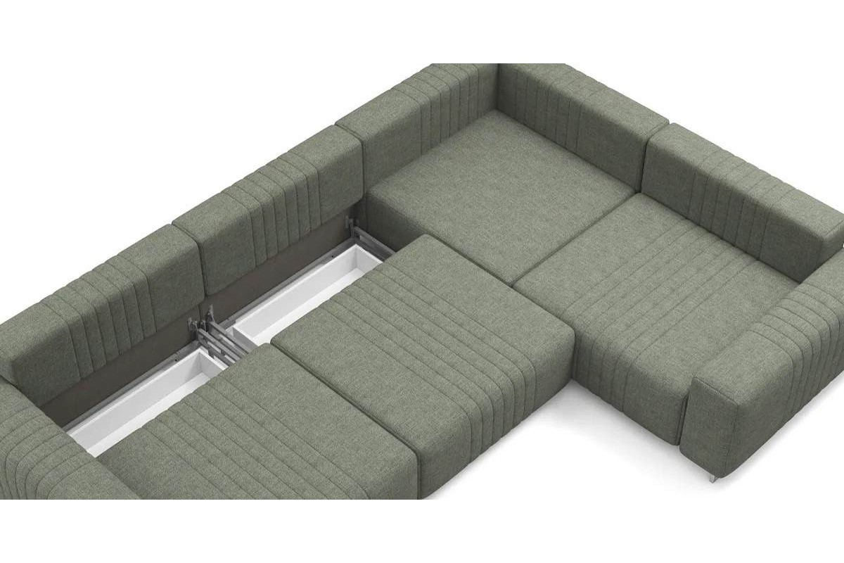 Угловой диван Хаммер NEXT с кресельной секцией с шир. подлокотниками тик-так рогожка зеленый 345х93х245 металлокаркас артикул 10414570