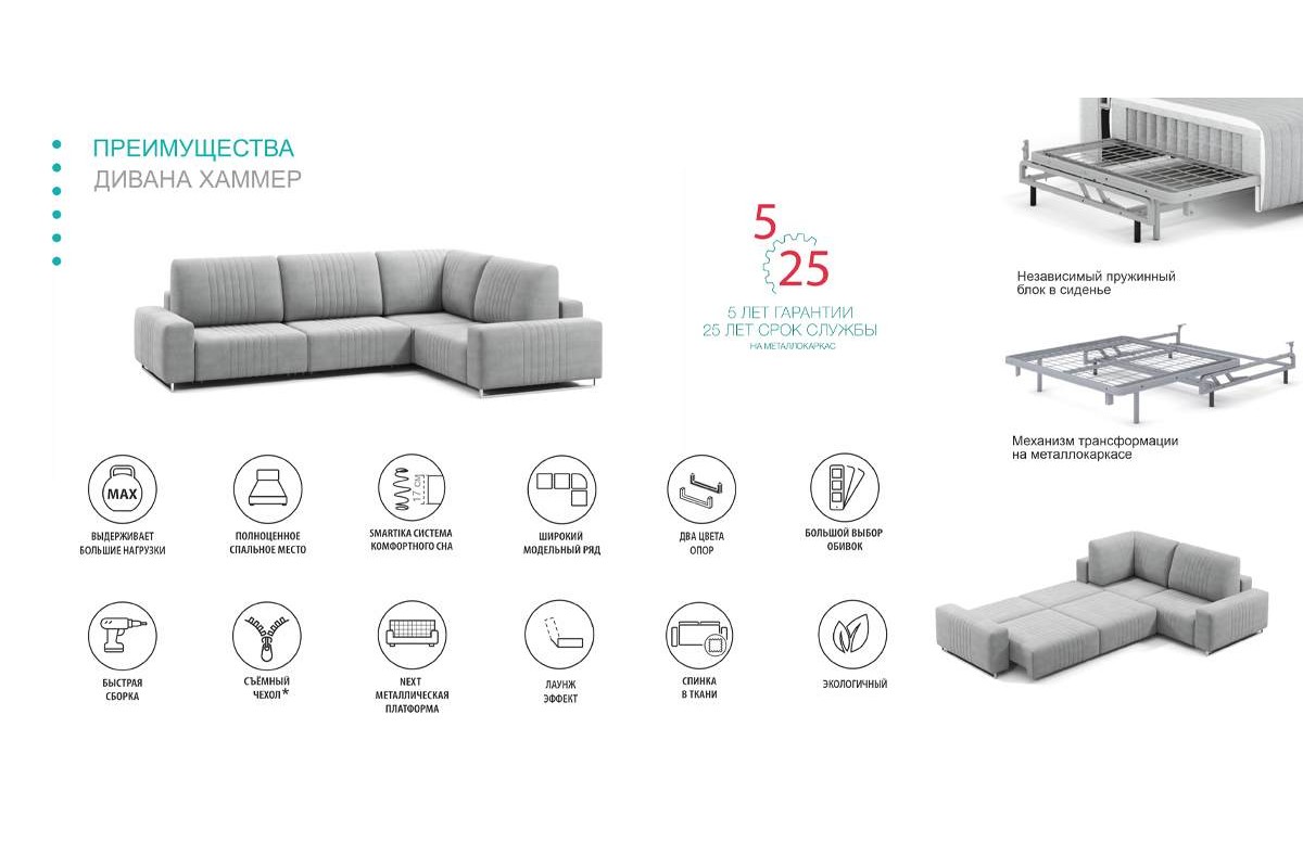 Угловой диван Хаммер NEXT с кресельной секцией с шир. подлокотниками тик-так шенилл голубой 345х93х245 металлокаркас артикул 10414589
