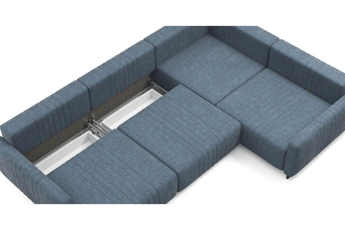 Угловой диван Хаммер NEXT с кресельной секцией с узкими подлокотниками тик-так шенилл синий 332х93х232 металлокаркас артикул 10414564