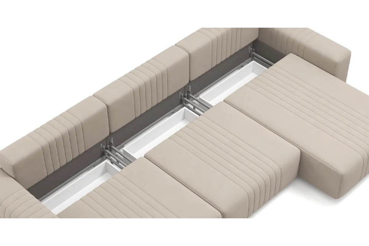 Угловой диван Хаммер NEXT с широкими подлокотниками тик-так микровелюр бежевый 355х93х169 металлокаркас артикул 10406107