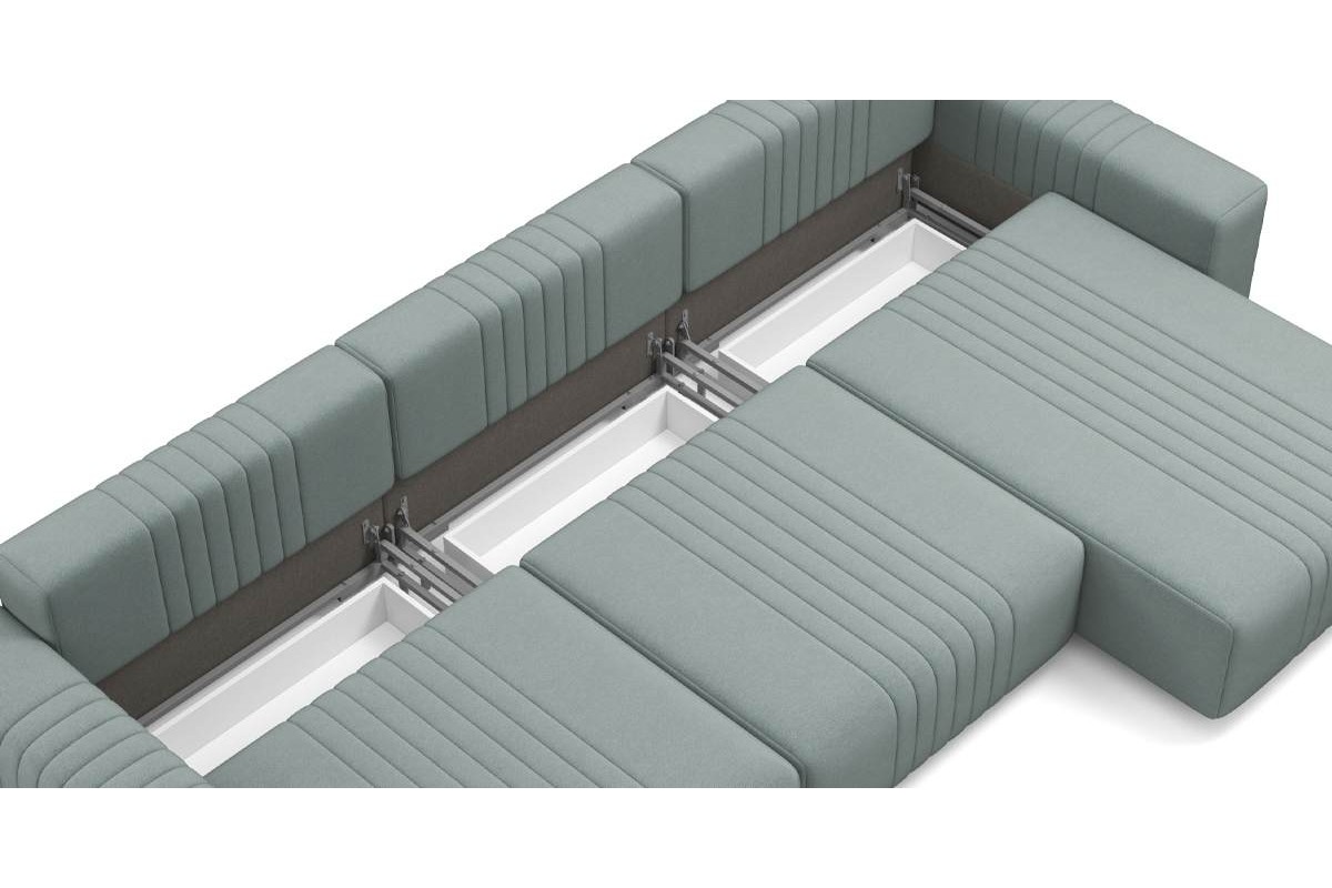 Угловой диван Хаммер NEXT с широкими подлокотниками тик-так микровелюр голубой 355х93х169 металлокаркас артикул 10406124