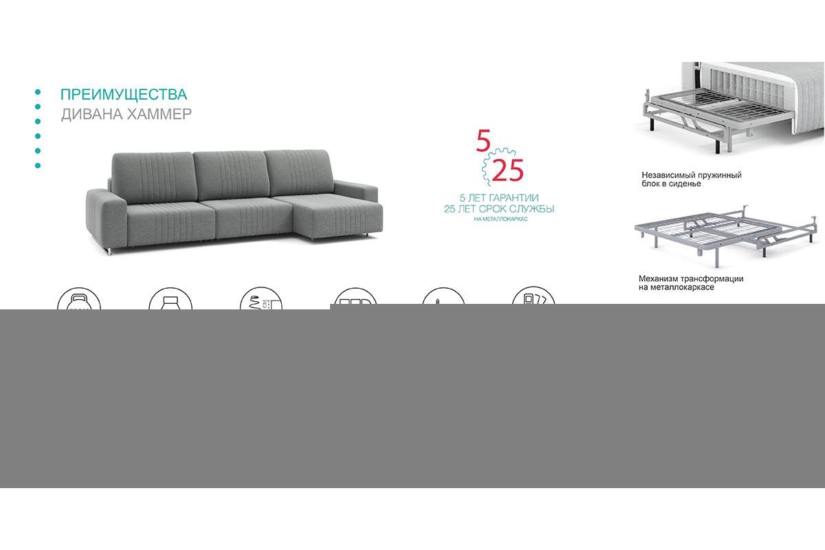 Угловой диван Хаммер NEXT с широкими подлокотниками тик-так рогожка серый 355х93х169 металлокаркас артикул 10406133