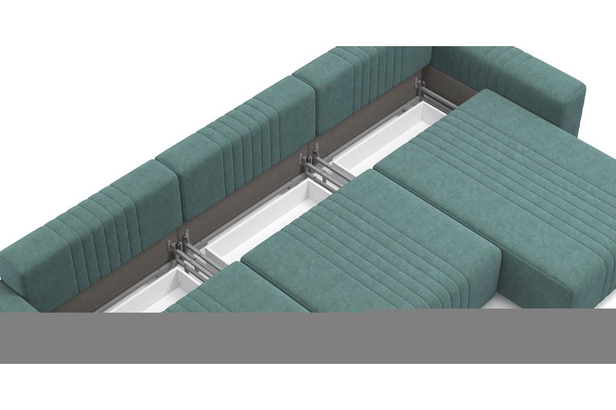 Угловой диван Хаммер NEXT с широкими подлокотниками тик-так велюр зеленый 355х93х169 металлокаркас артикул 10406156