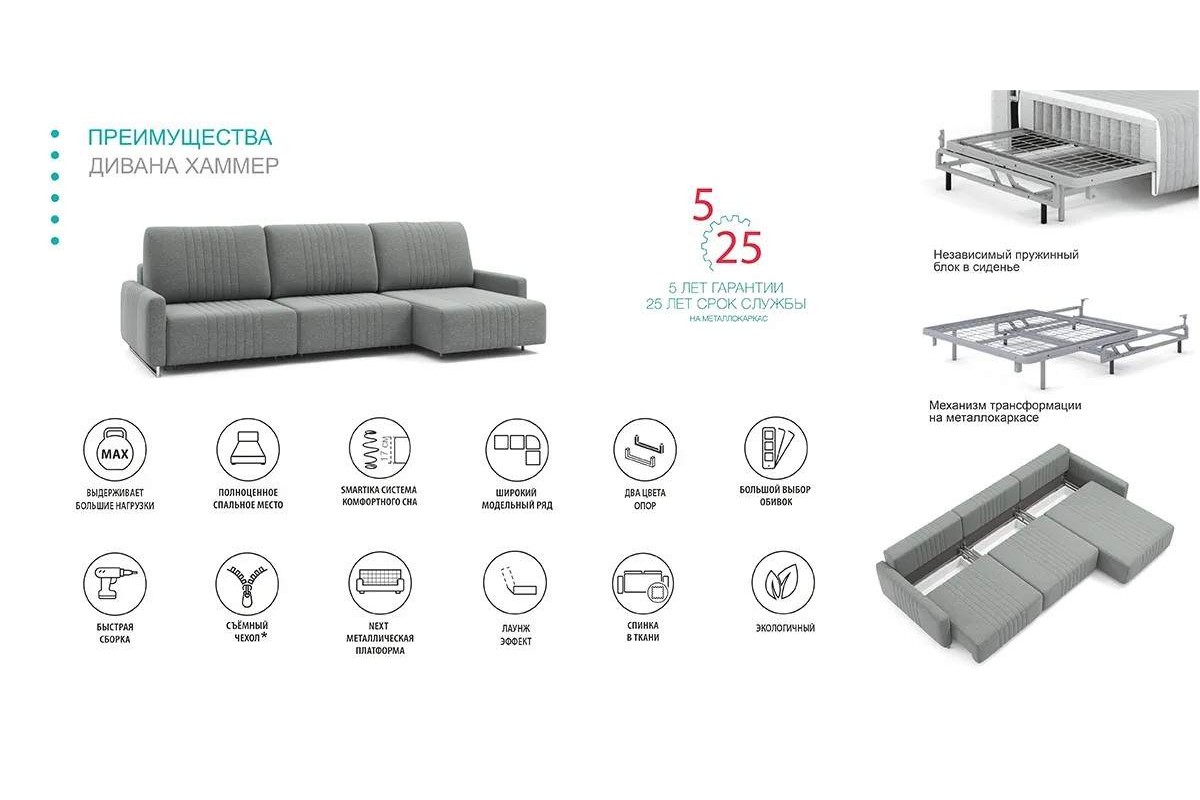 Угловой диван Хаммер NEXT с узкими подлокотниками тик-так рогожка бежевый 329х93х169 металлокаркас артикул 10405805