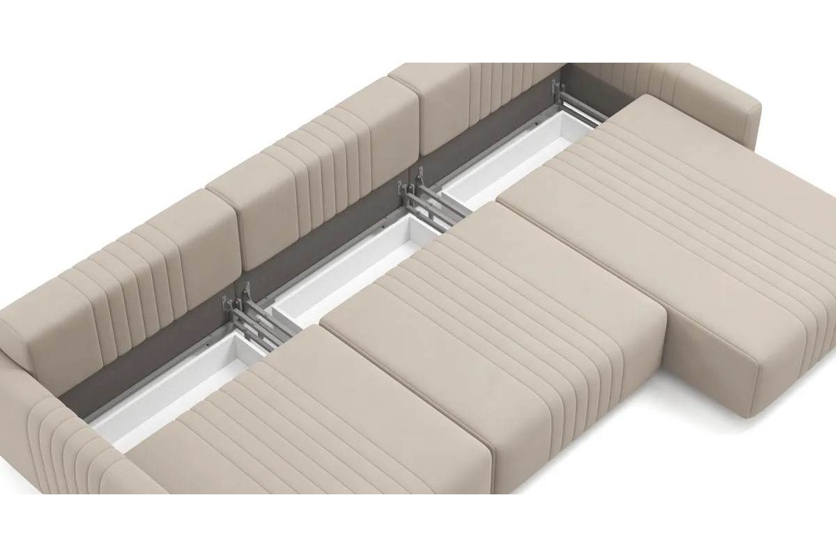 Угловой диван Хаммер NEXT с узкими подлокотниками тик-так микровелюр бежевый 329х93х169 металлокаркас артикул 10406069