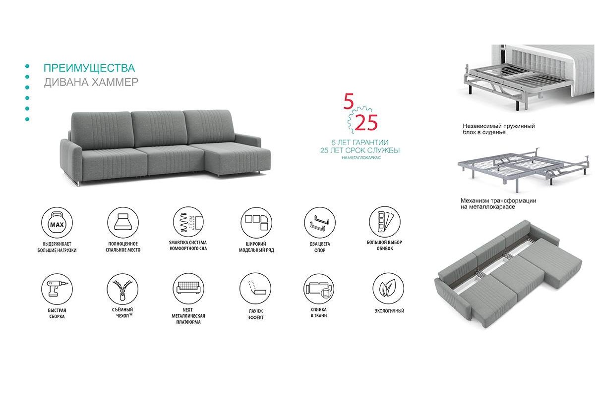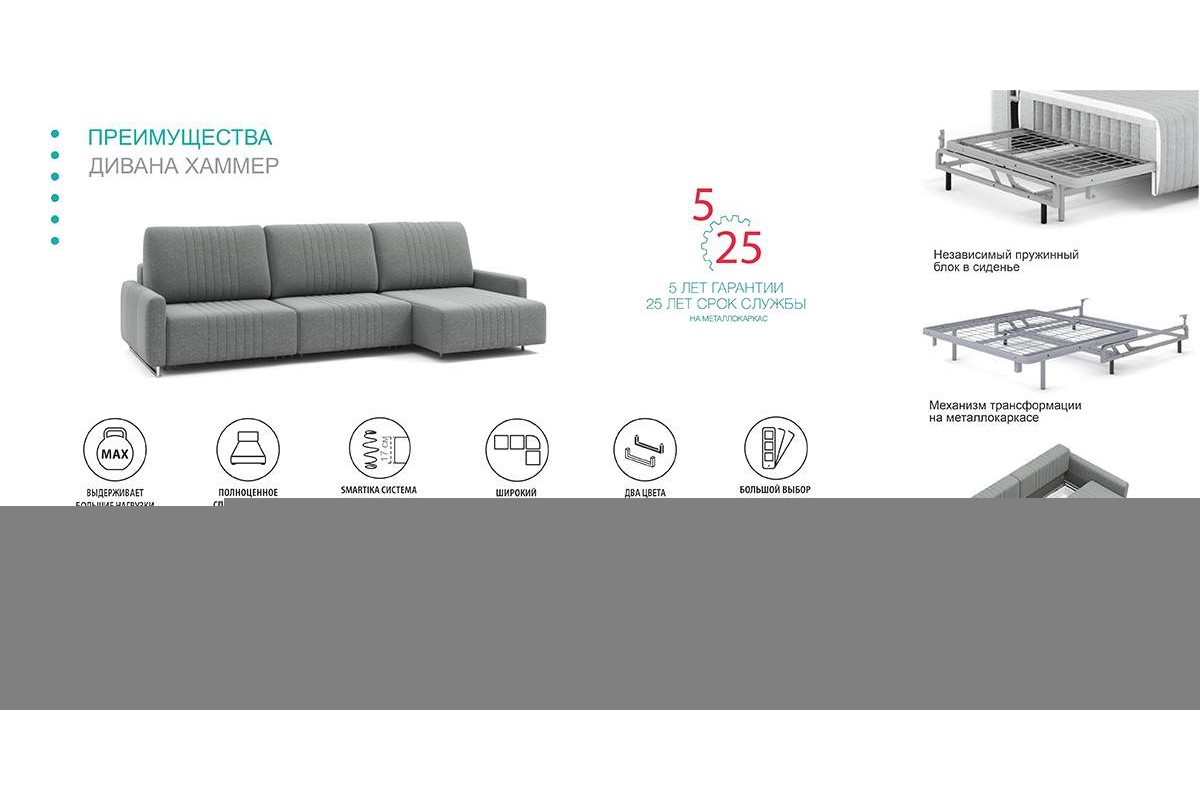 Угловой диван Хаммер NEXT с узкими подлокотниками тик-так шенилл синий 329х93х169 металлокаркас артикул 10406368