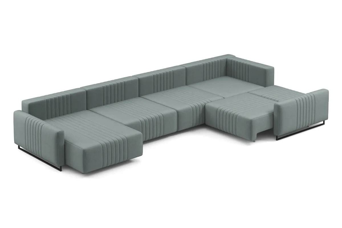 Угловой диван Хаммер NEXT с узкими подлокотниками с оттоманкой тик-так микровелюр голубой 439х93х232 металлокаркас артикул 10418862