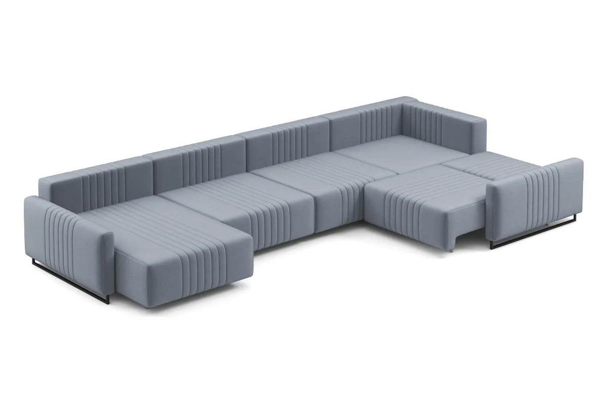 Угловой диван Хаммер NEXT с узкими подлокотниками с оттоманкой тик-так микровелюр синий 439х93х232 металлокаркас артикул 10418863