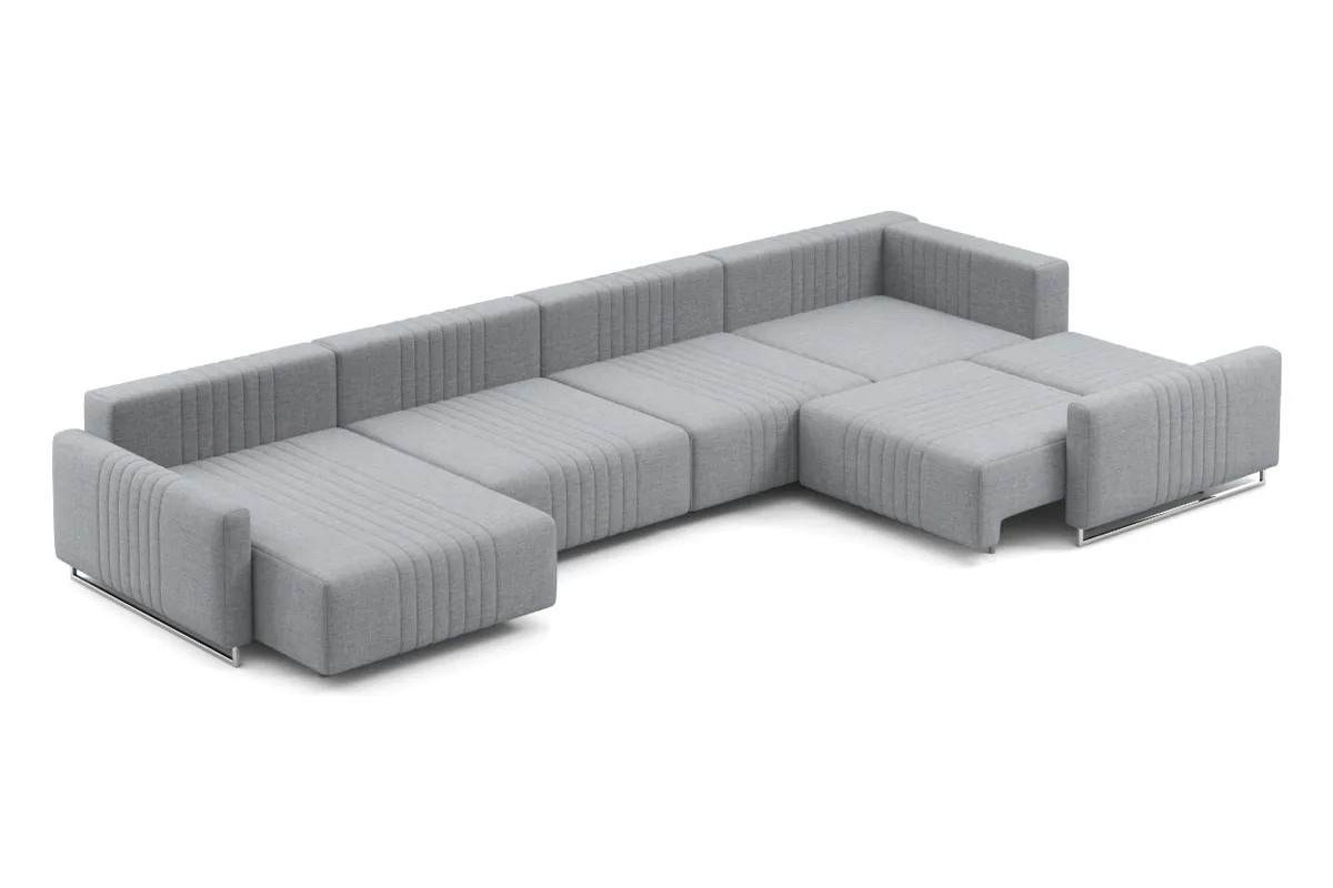 Угловой диван Хаммер NEXT с узкими подлокотниками с оттоманкой тик-так рогожка бежевый 439х93х232 металлокаркас артикул 10418894