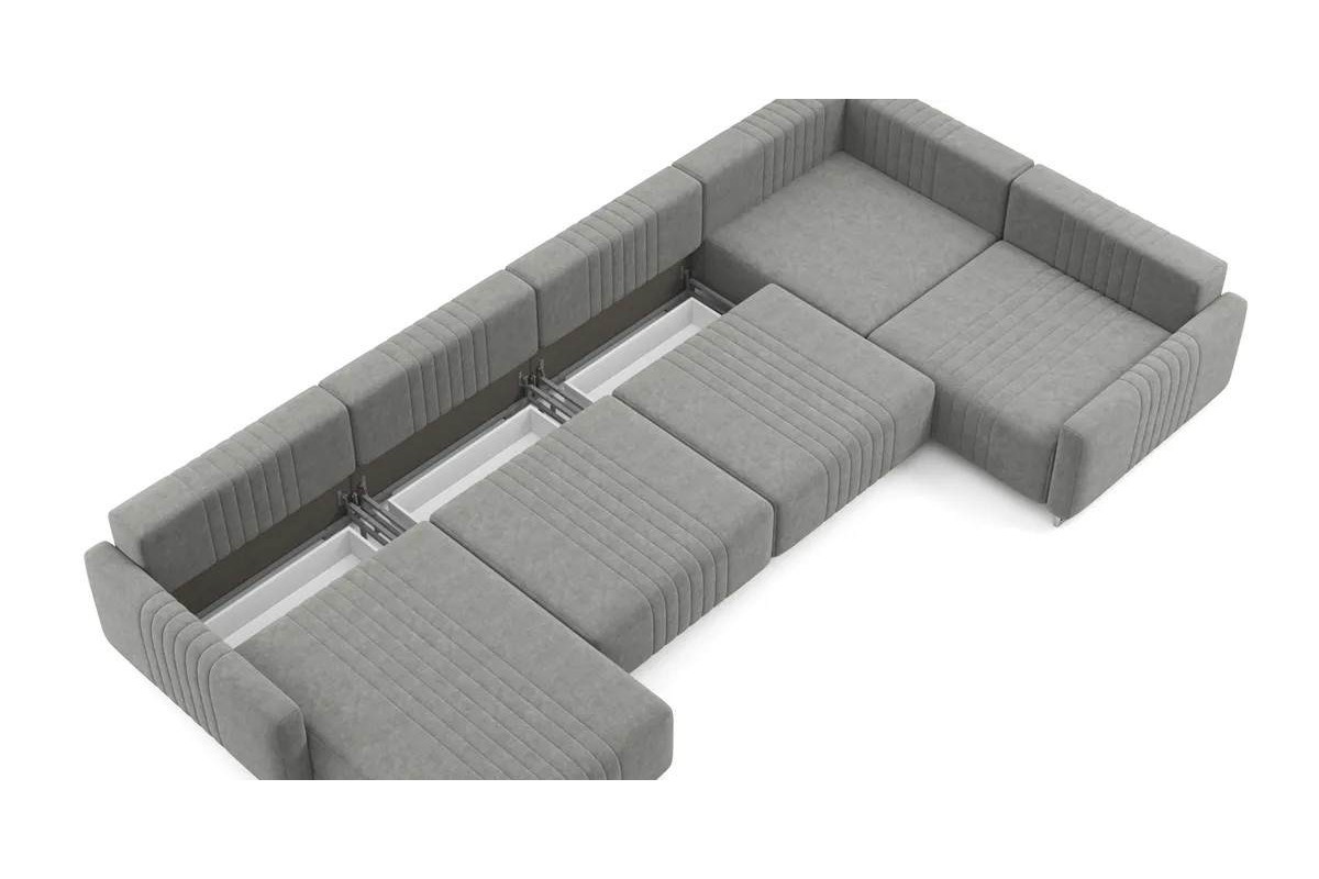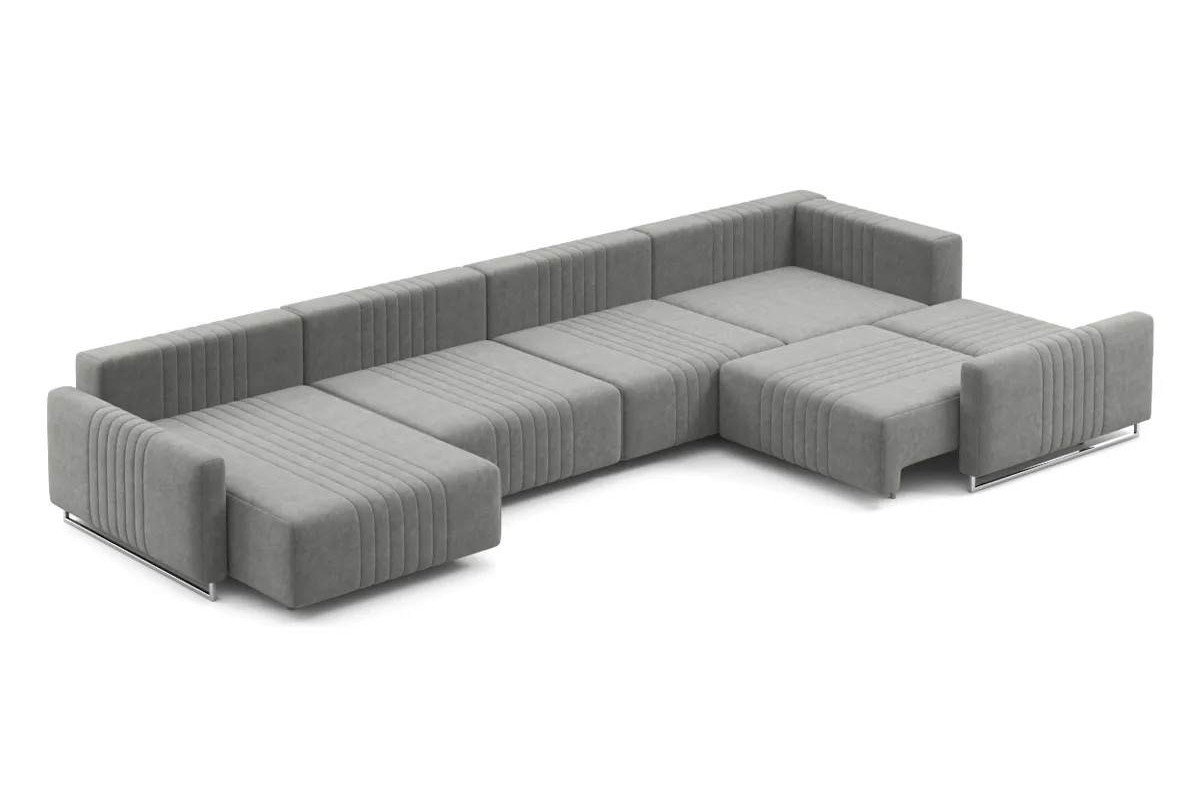 Угловой диван Хаммер NEXT с узкими подлокотниками с оттоманкой тик-так велюр серый 439х93х232 металлокаркас артикул 10418904