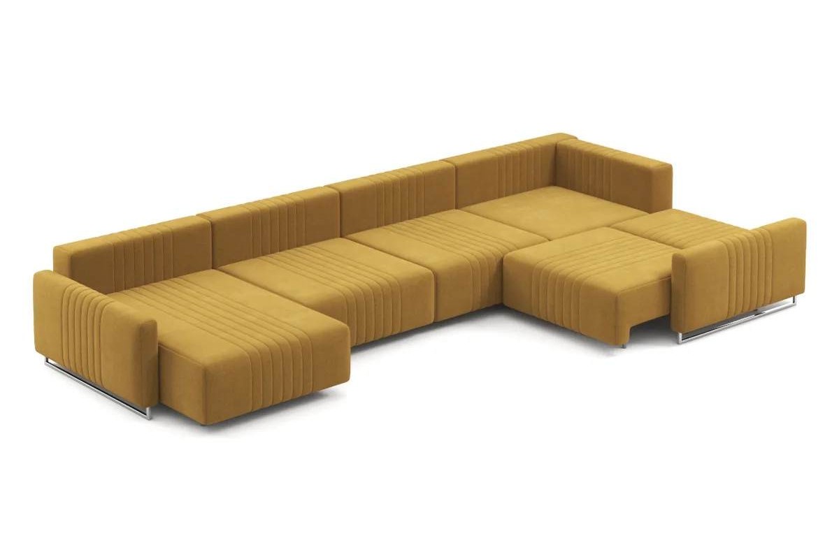 Угловой диван Хаммер NEXT с узкими подлокотниками с оттоманкой тик-так шенилл желтый 439х93х232 металлокаркас артикул 10418909