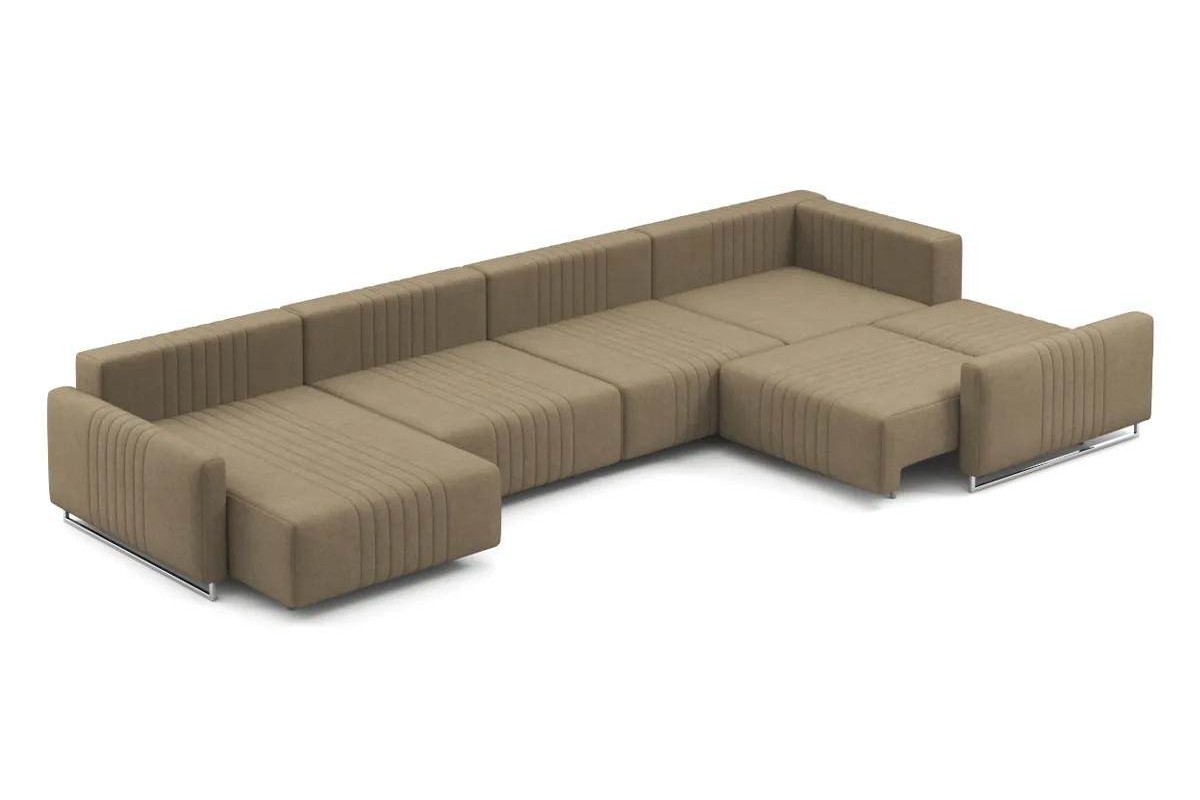 Угловой диван Хаммер NEXT с узкими подлокотниками с оттоманкой тик-так рогожка коричневый 439х93х232 металлокаркас артикул 10418846
