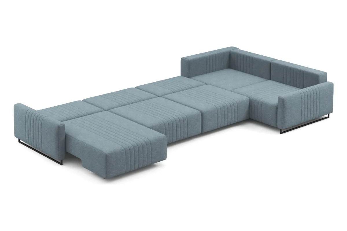 Угловой диван Хаммер NEXT с узкими подлокотниками с оттоманкой тик-так рогожка синий 439х93х232 металлокаркас артикул 10418914