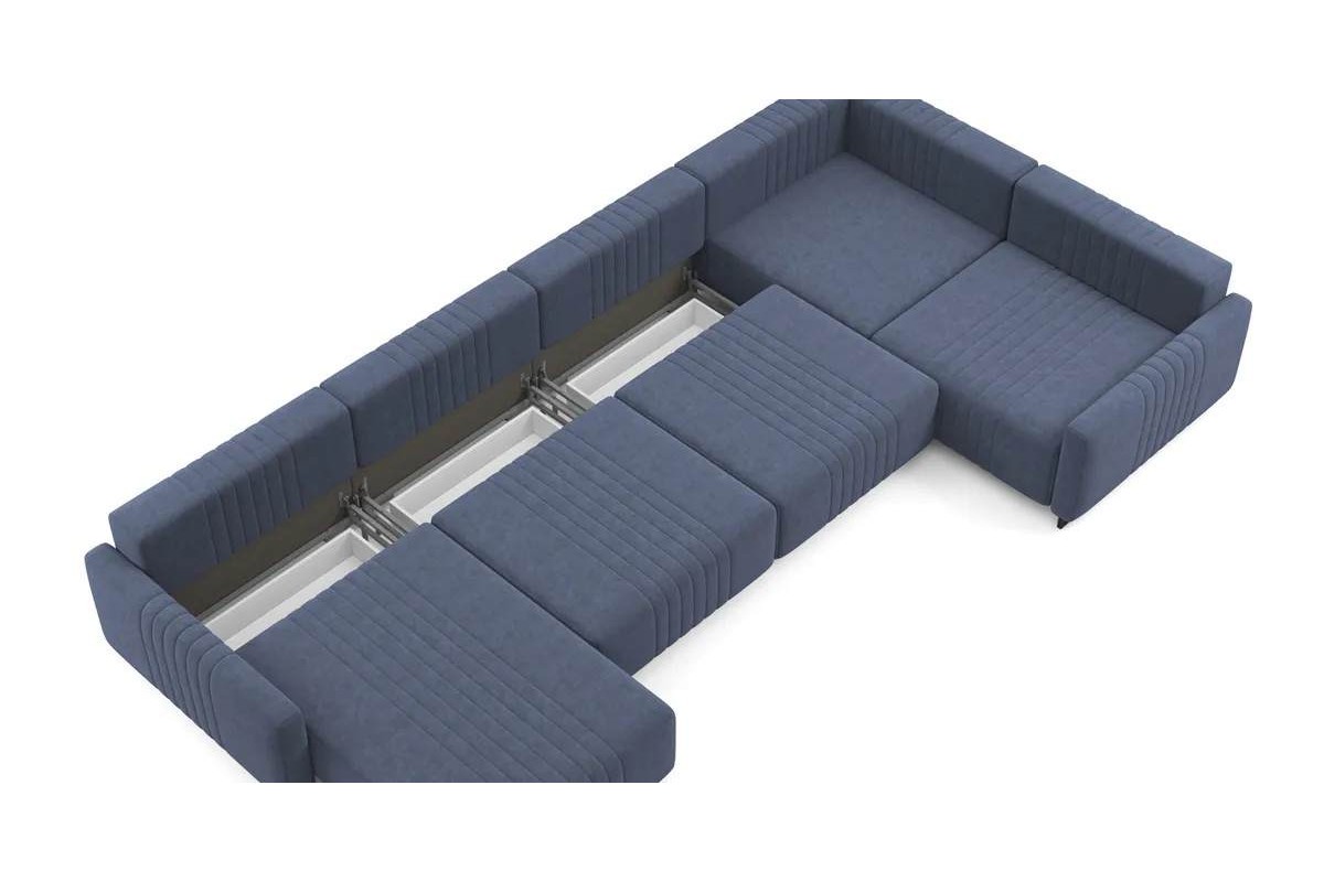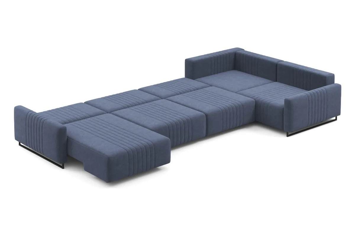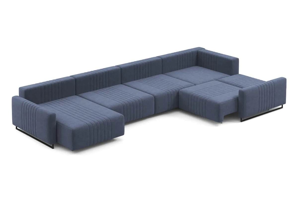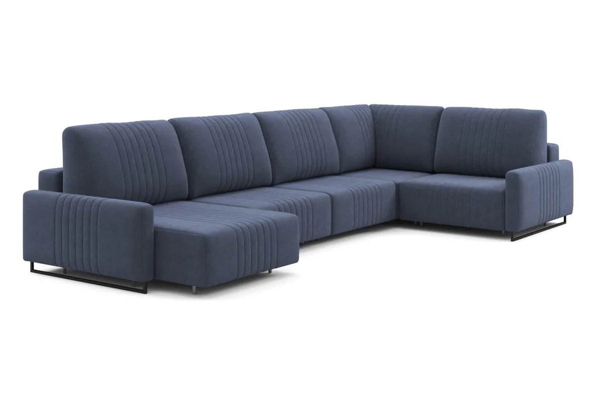 Угловой диван Хаммер NEXT с узкими подлокотниками с оттоманкой тик-так велюр синий 439х93х232 металлокаркас артикул 10418924
