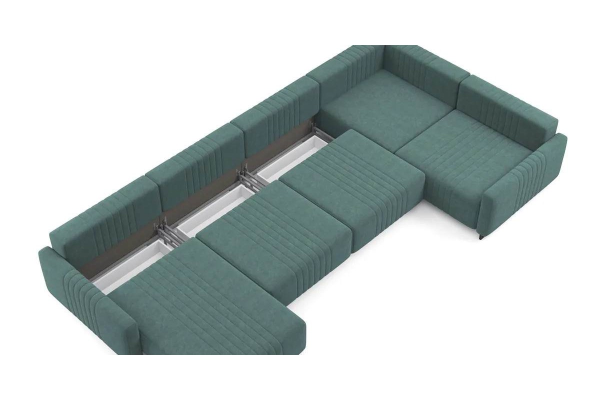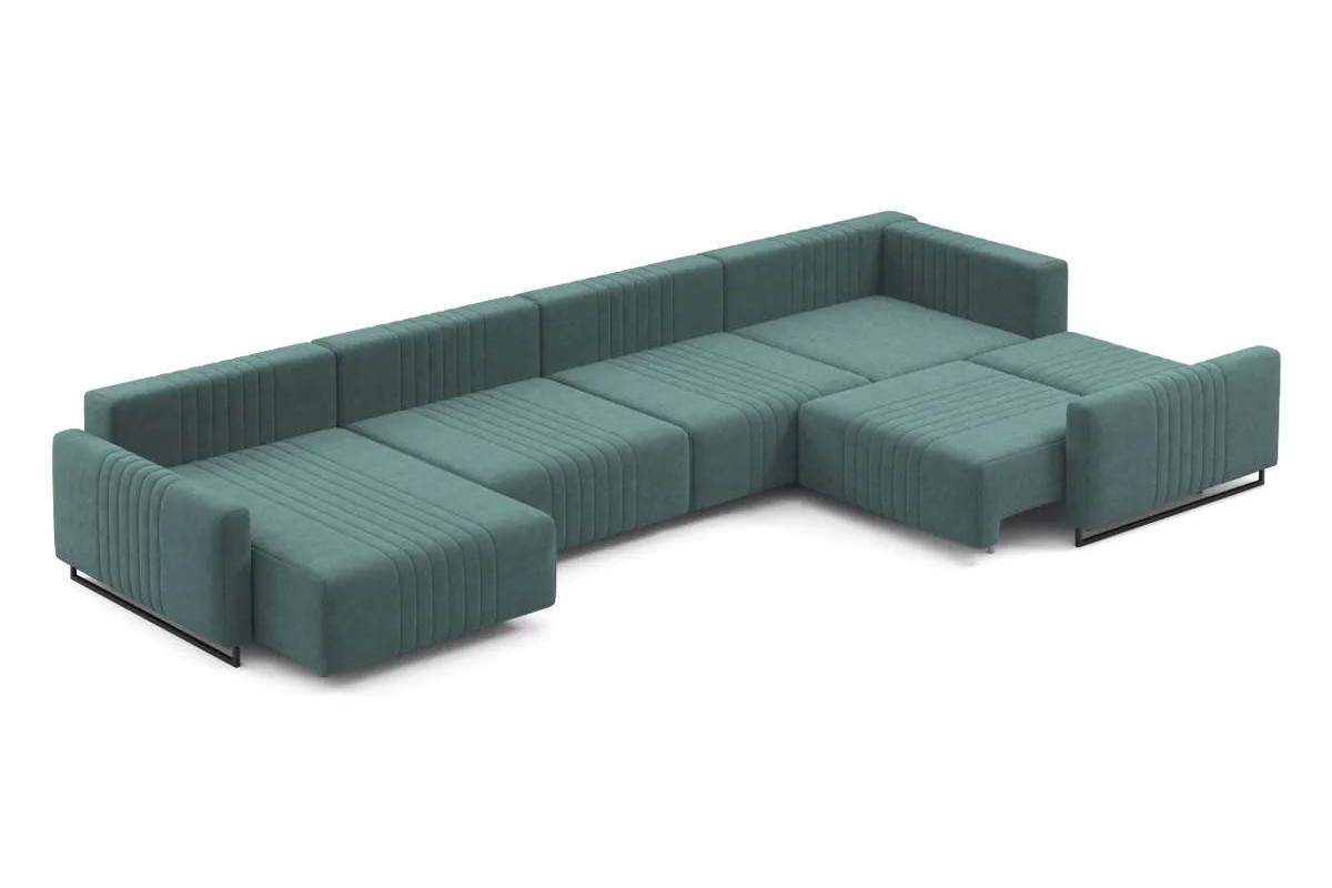 Угловой диван Хаммер NEXT с узкими подлокотниками с оттоманкой тик-так велюр зеленый 439х93х232 металлокаркас артикул 10418926