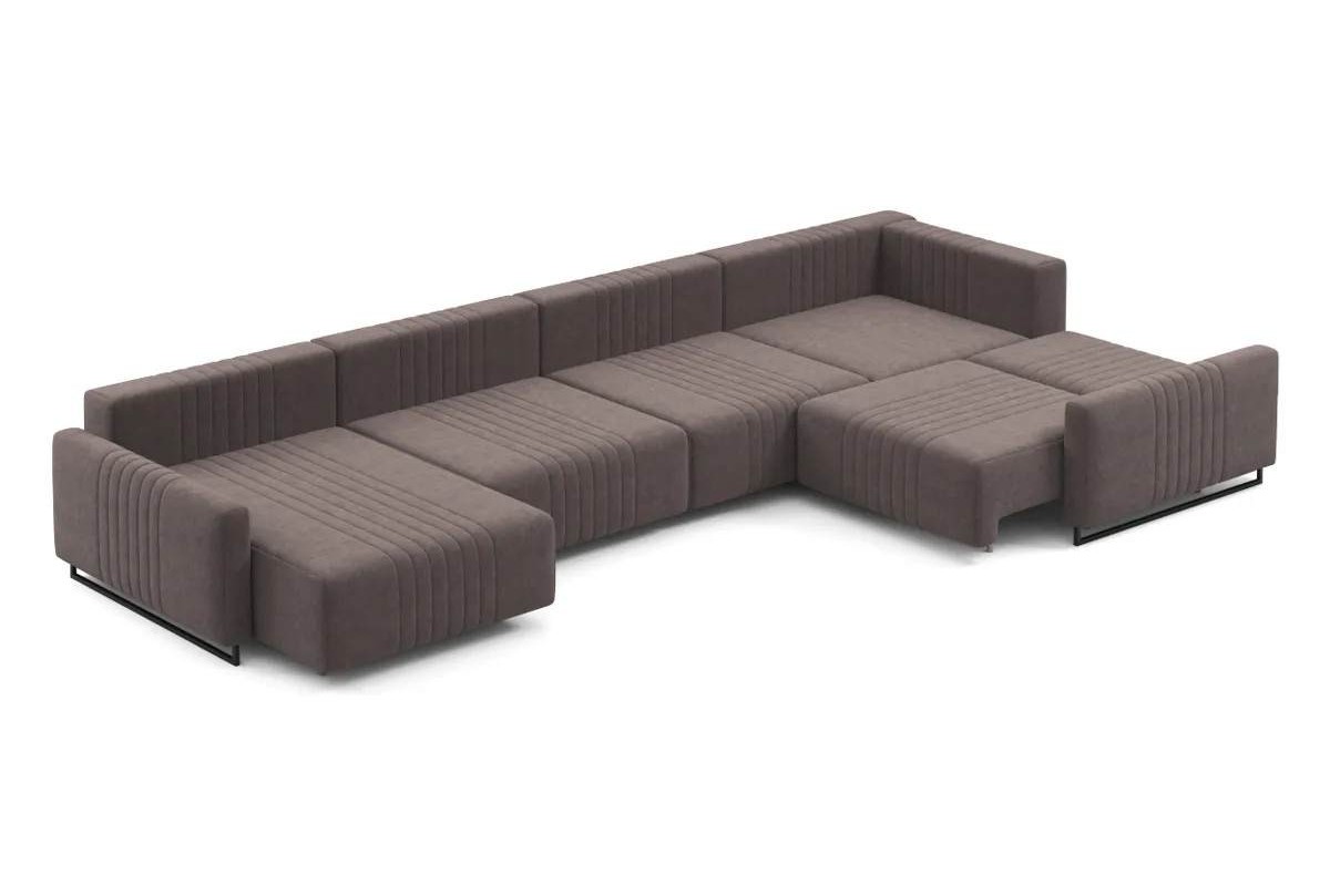 Угловой диван Хаммер NEXT с узкими подлокотниками с оттоманкой тик-так велюр коричневый 439х93х232 металлокаркас артикул 10418929