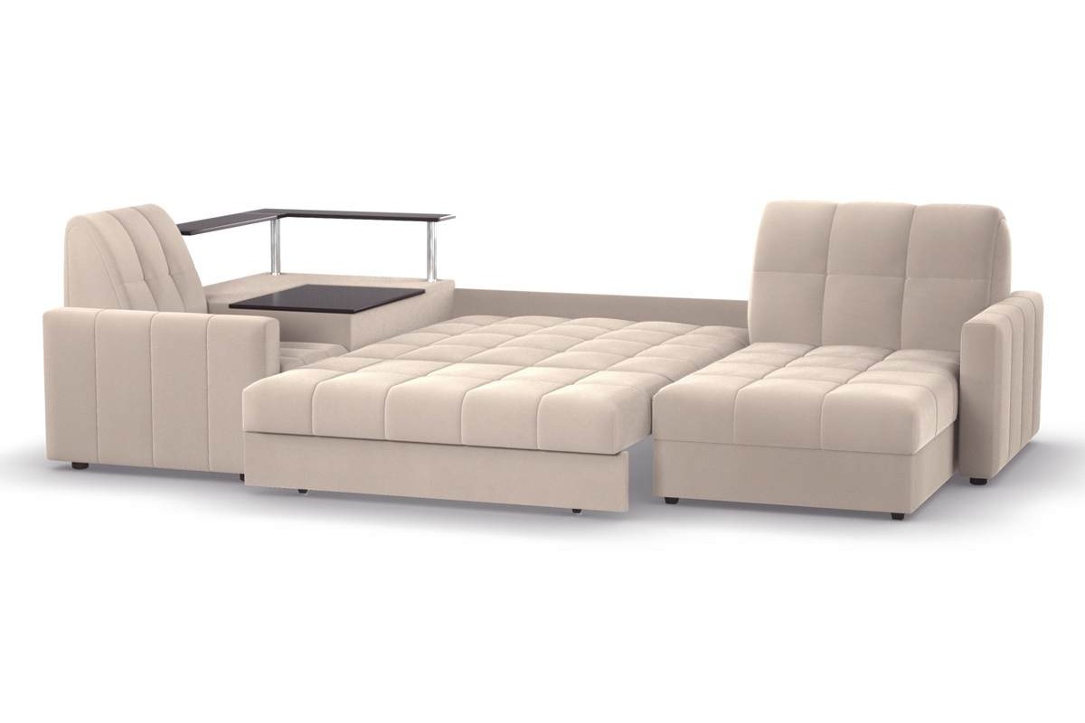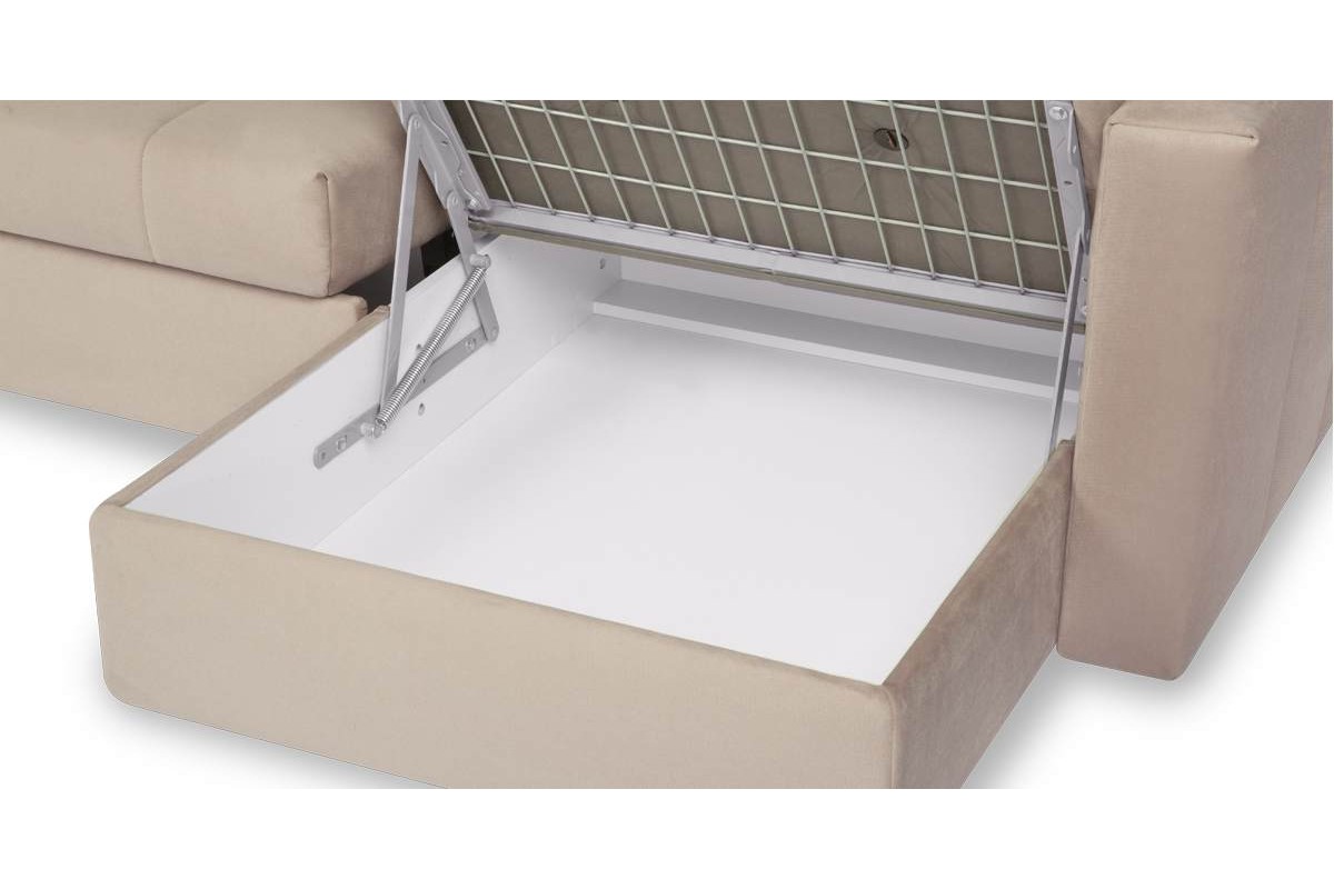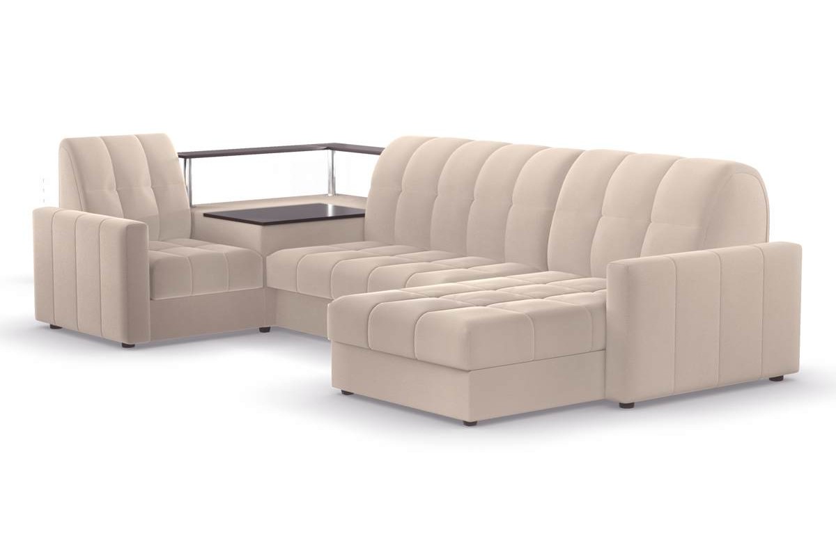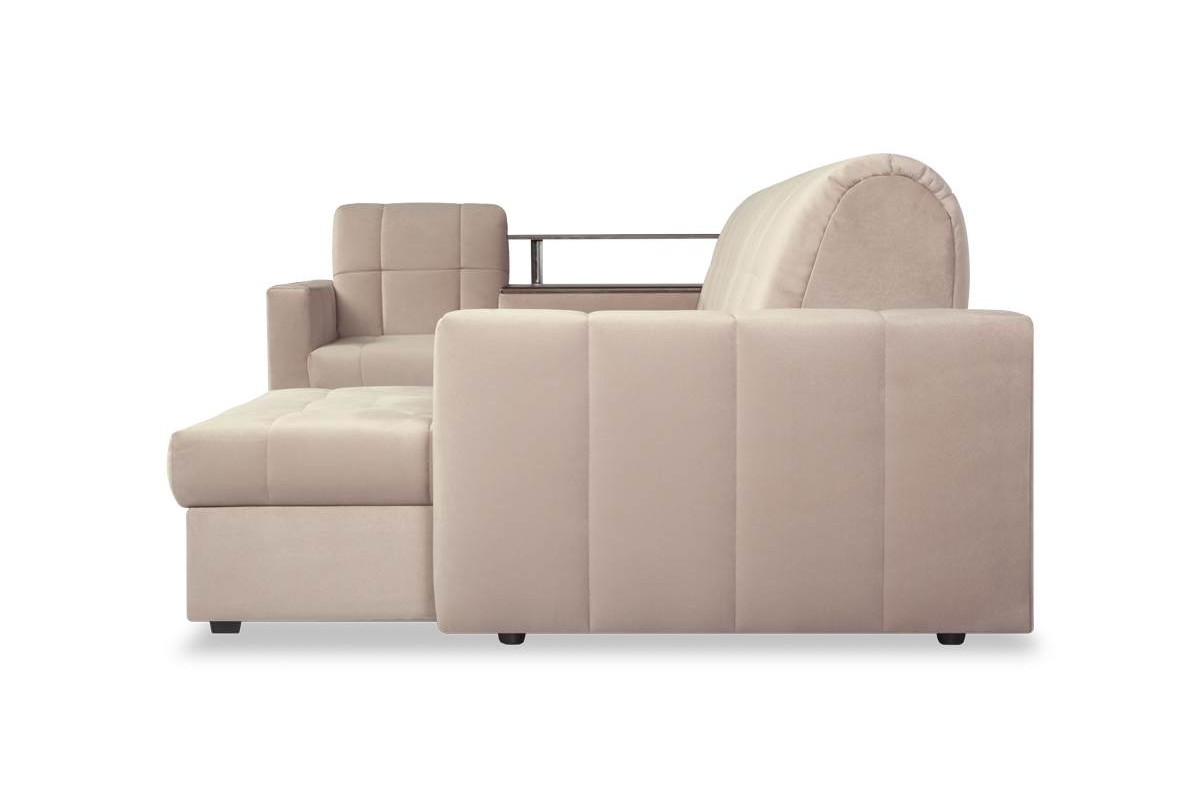 - Угловой диван Инсбрук NEXT 140 K-5 с оттоманкой мини и полкой венге аккордеон микровелюр бежевый 331х86х187 металлокаркас артикул 10178484