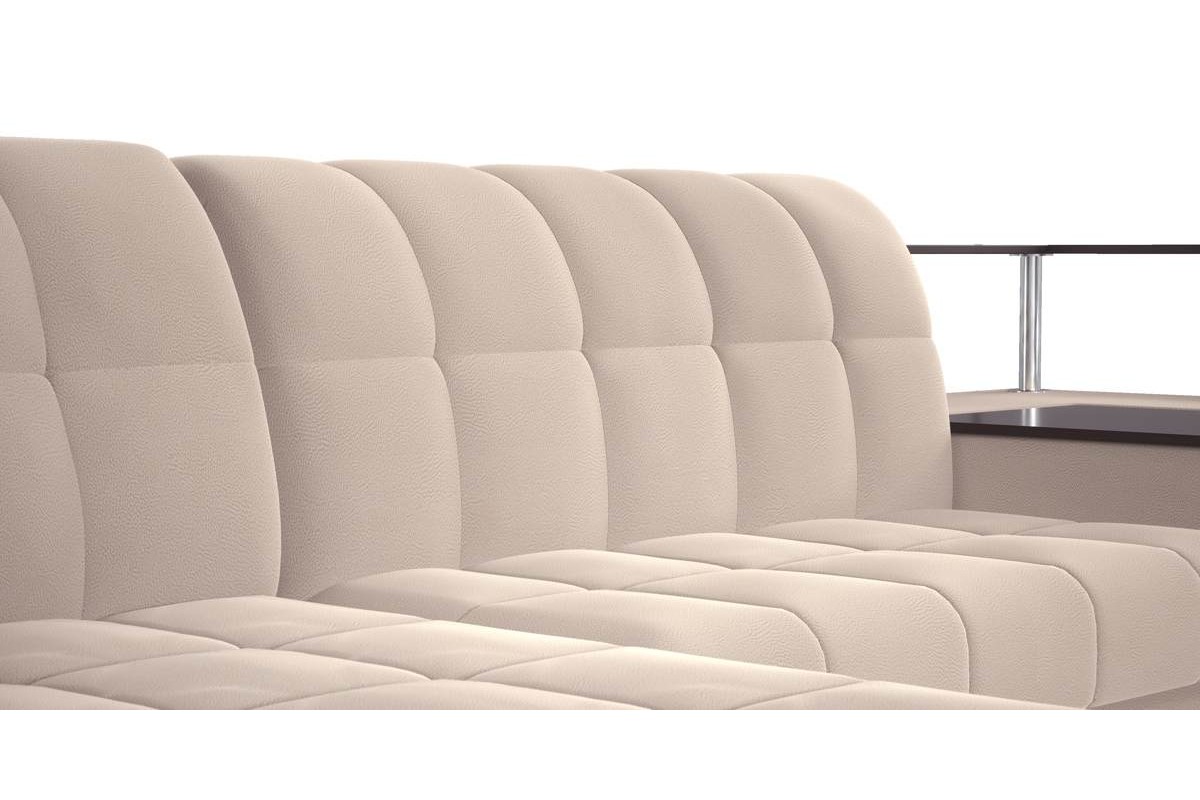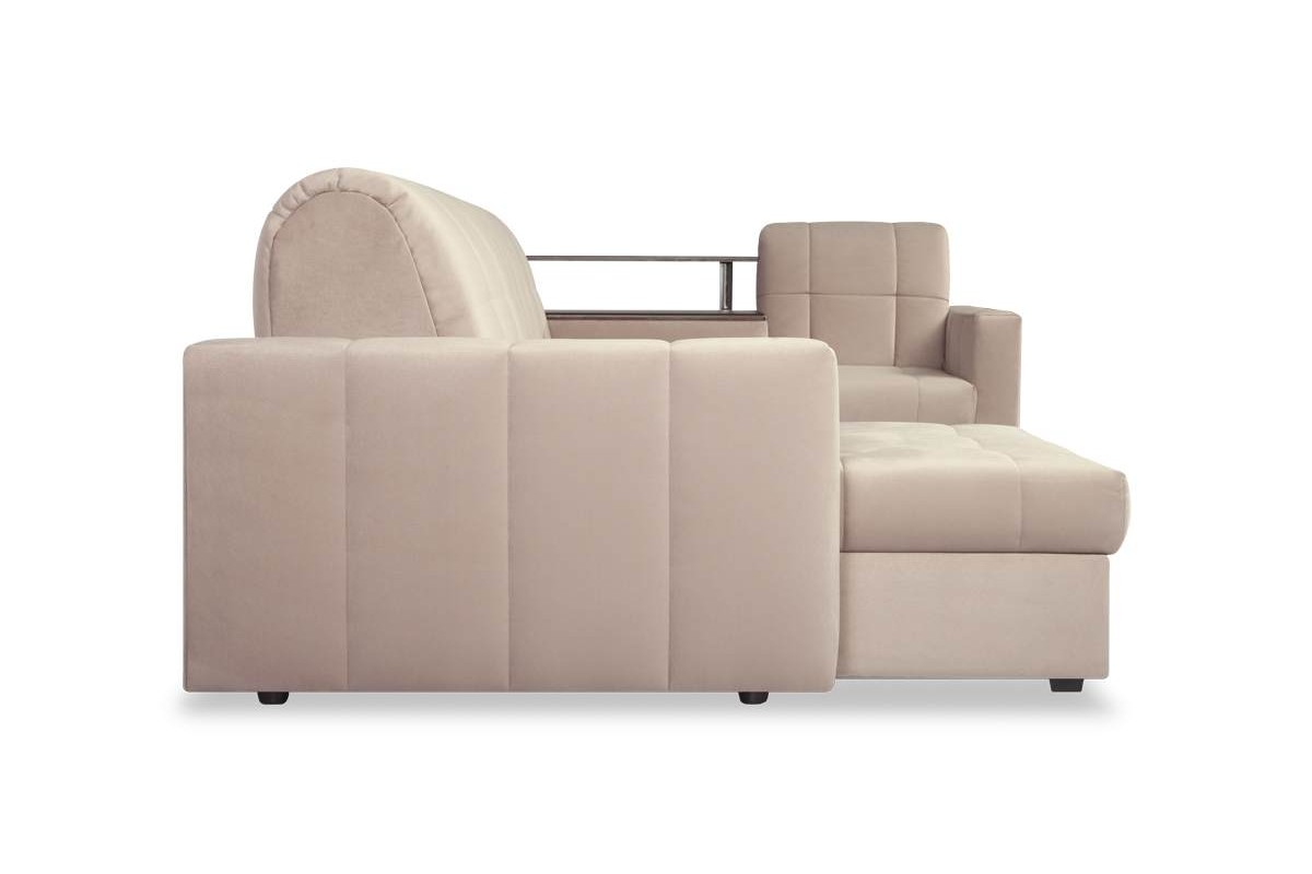 - Угловой диван Инсбрук NEXT 140 K-5 с оттоманкой мини и полкой венге аккордеон микровелюр бежевый 331х86х187 металлокаркас артикул 10178485