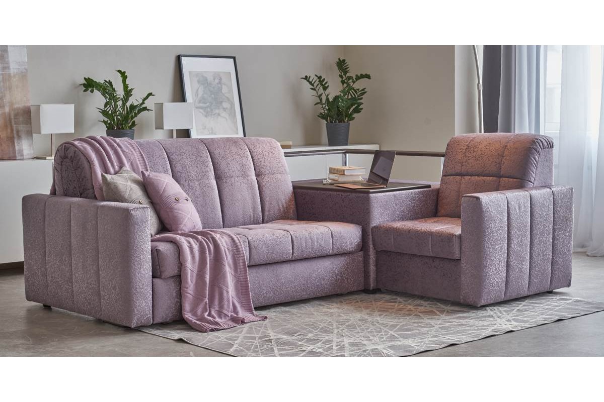 Угловой диван Инсбрук NEXT 155 K-4 с полкой венге аккордеон микровелюр розовый 264х90х189 металлокаркас артикул 10310305
