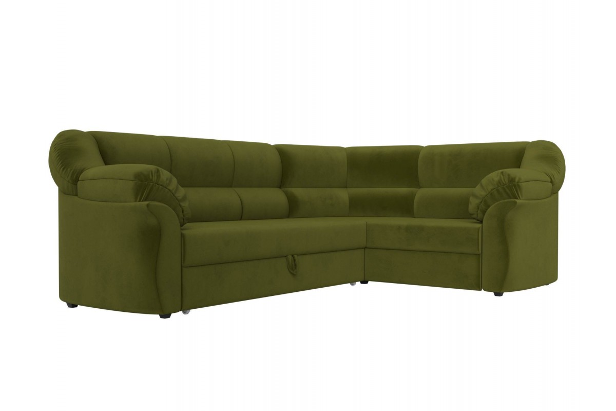 Угловой диван Карнелла Правый дельфин микровельвет зеленый 260х93х182 брус артикул 10140586
