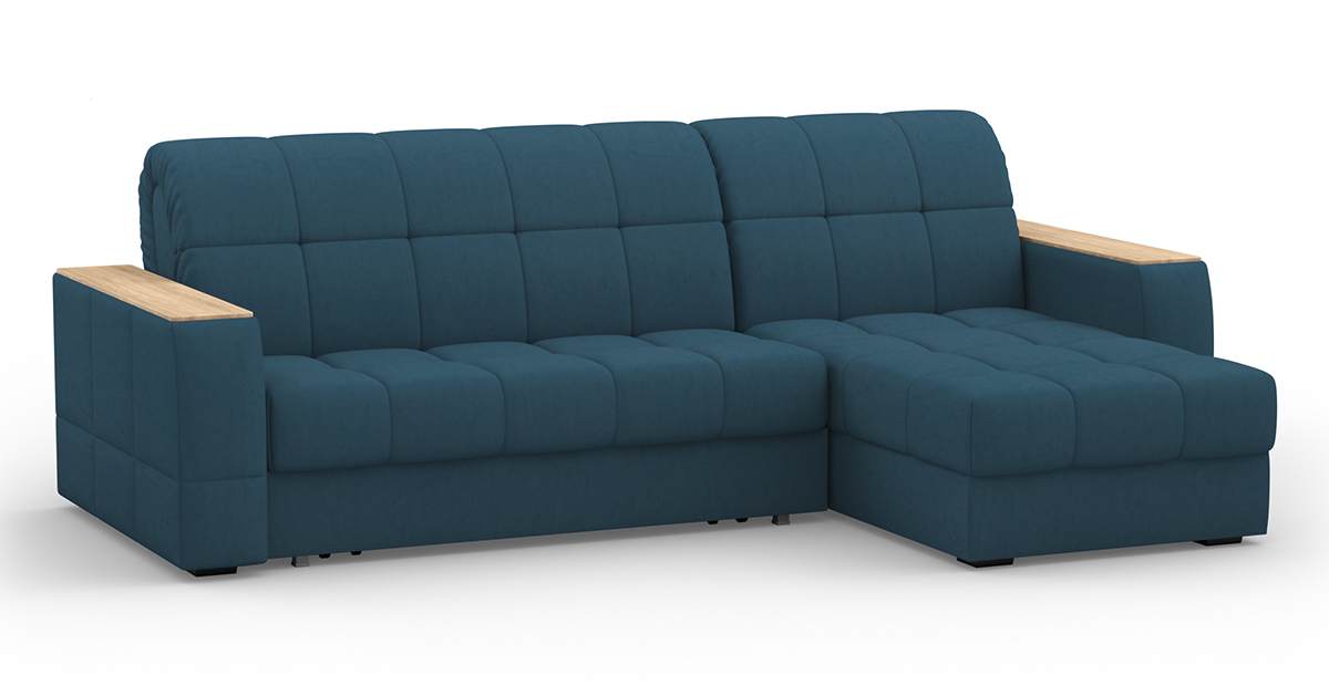 Угловой диван Коломбо 140 мини декор дуб каньон аккордеон велюр синий 278х94х158 металлокаркас артикул 10461057