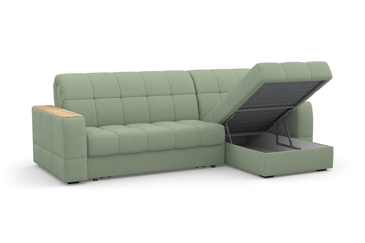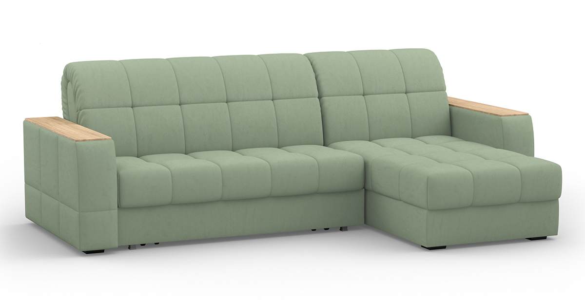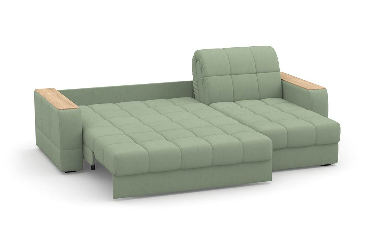 Угловой диван Коломбо 140 мини декор дуб каньон аккордеон велюр зеленый 278х94х158 металлокаркас артикул 10461240
