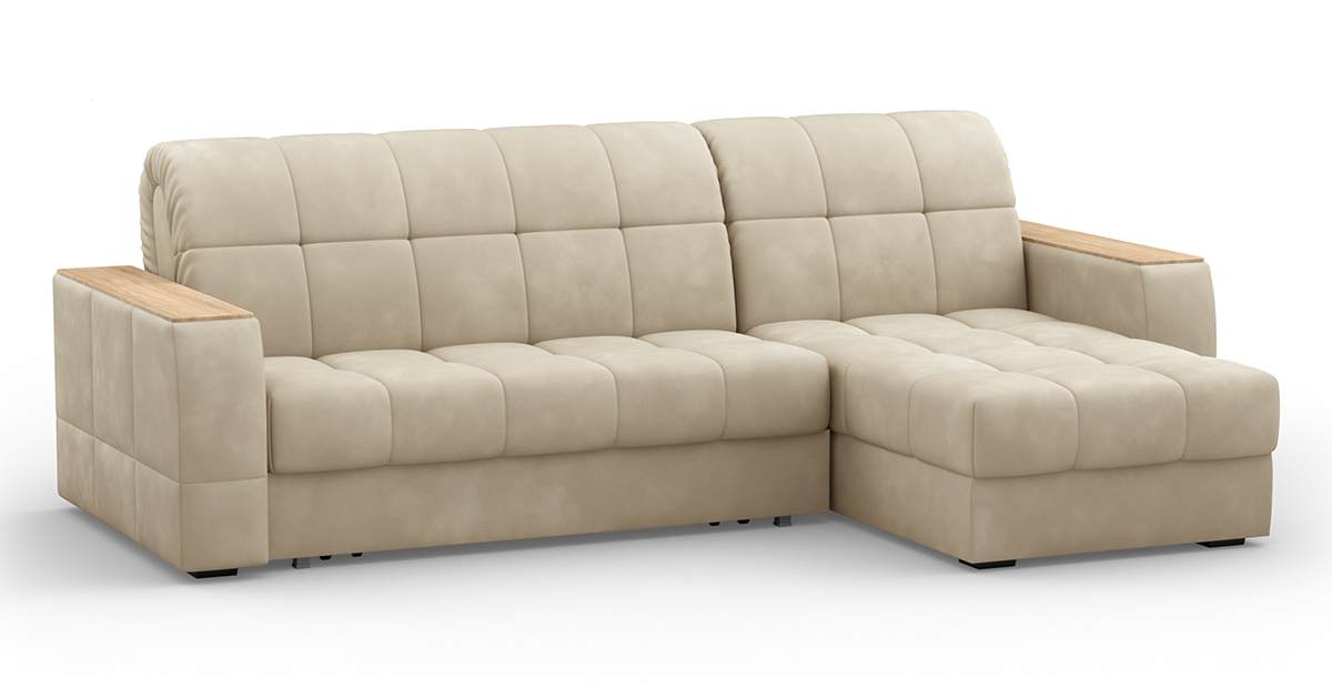 Угловой диван Коломбо 140 мини декор дуб каньон аккордеон искусственная замша бежевый 278х94х158 металлокаркас артикул 10461067