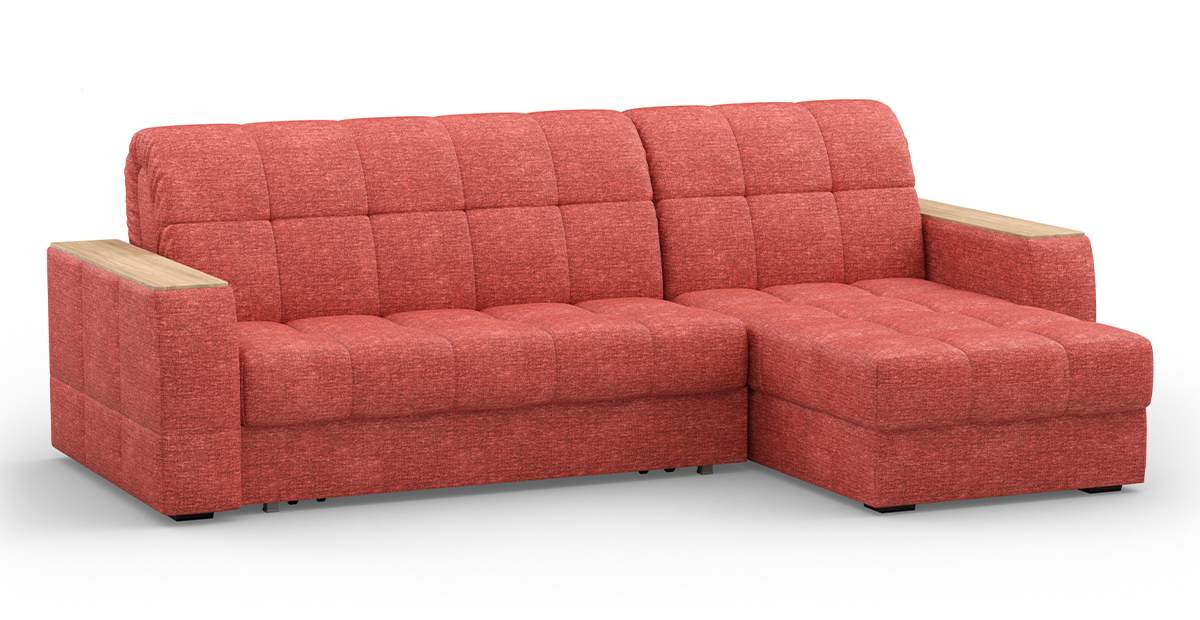 Угловой диван Коломбо 140 мини декор дуб каньон аккордеон шенилл красный 278х94х158 металлокаркас артикул 10461299