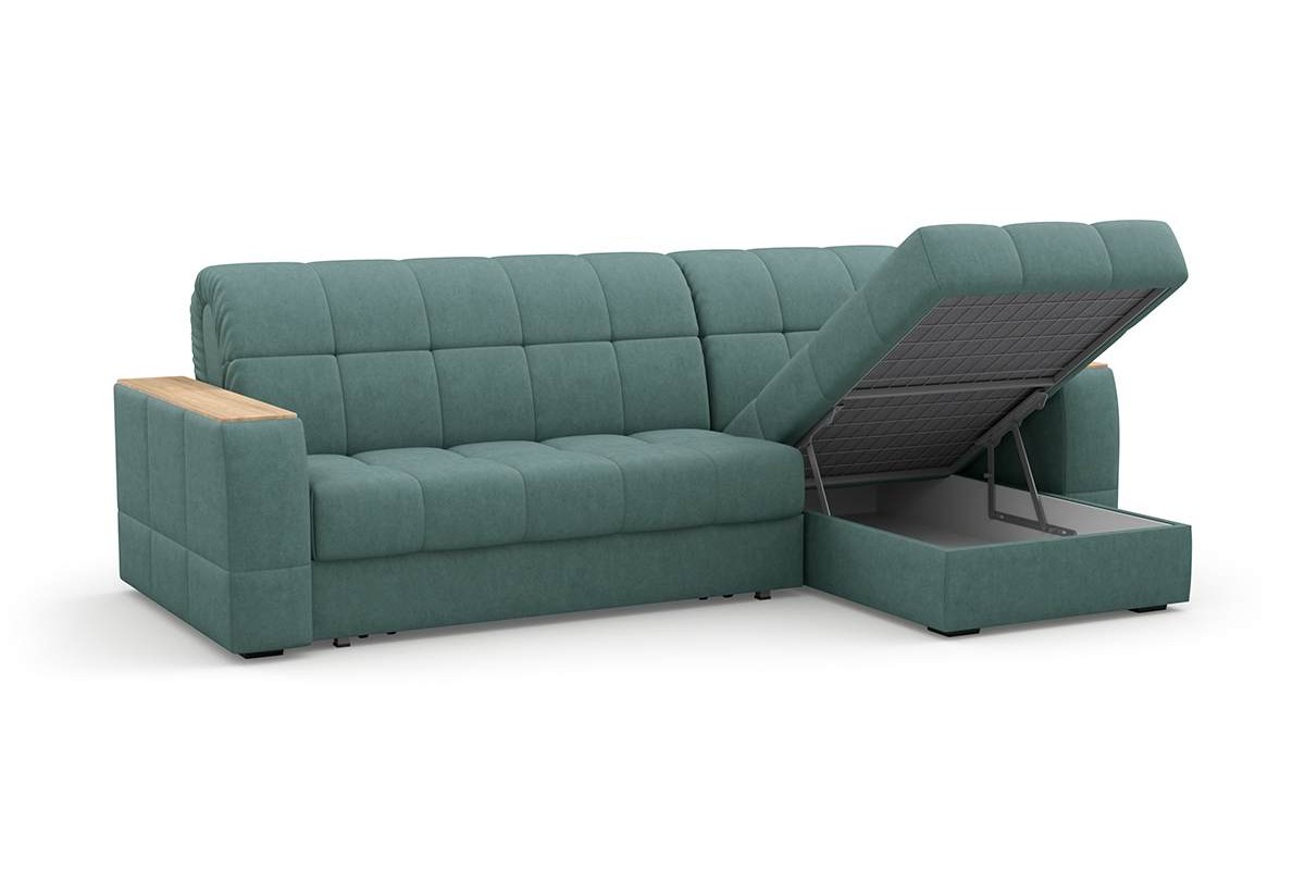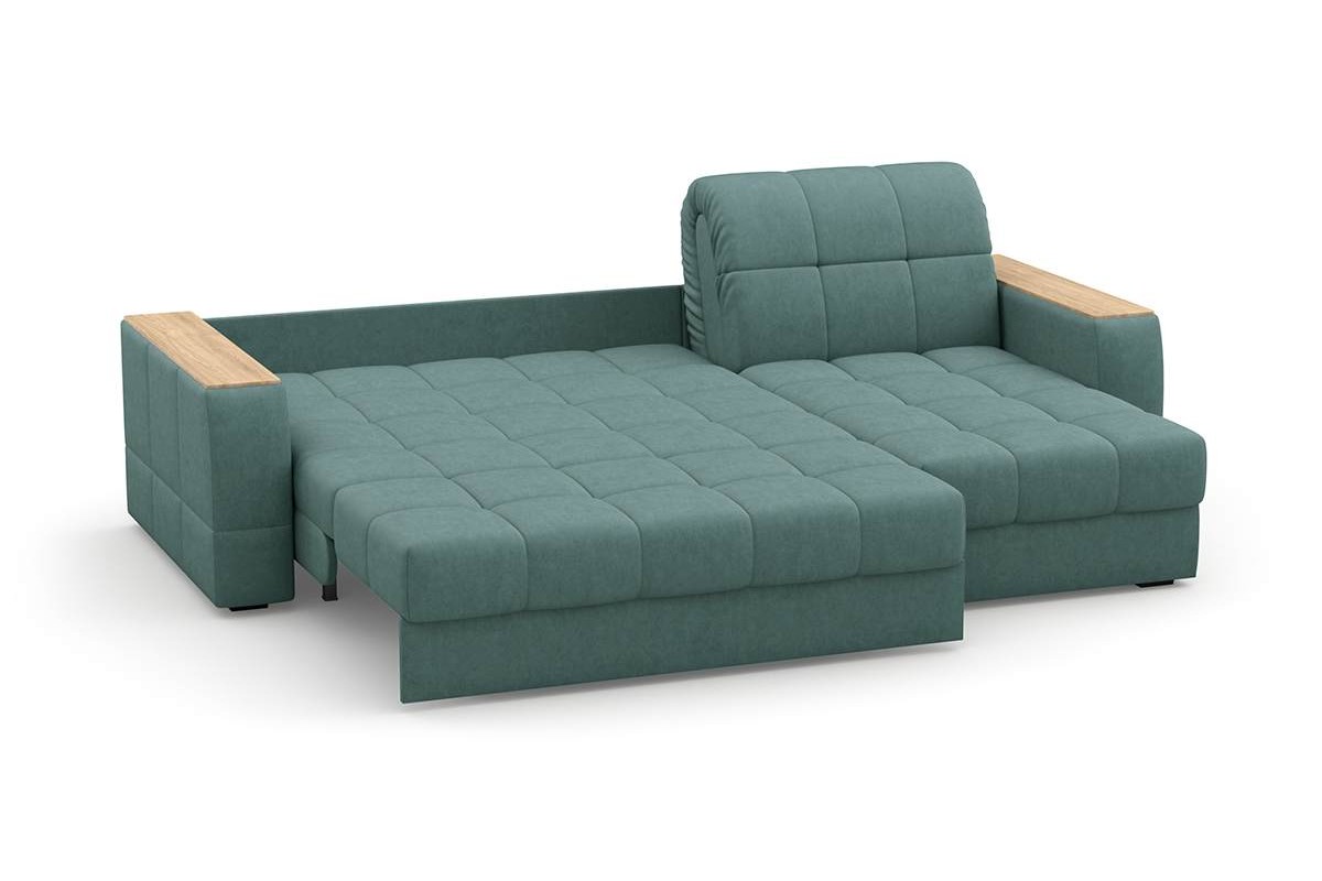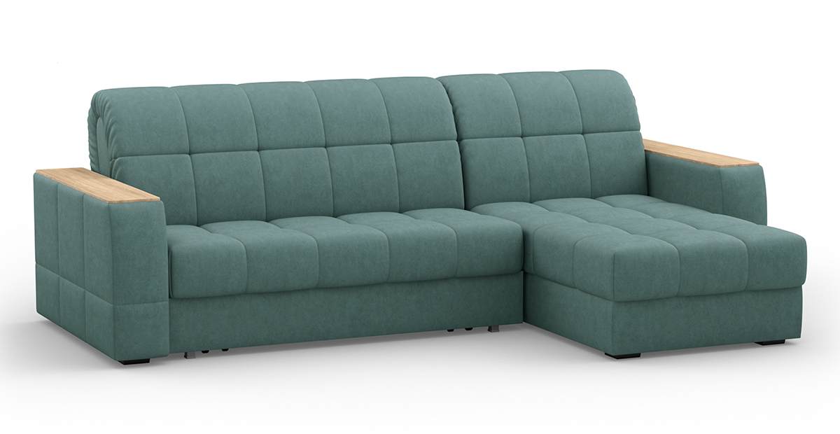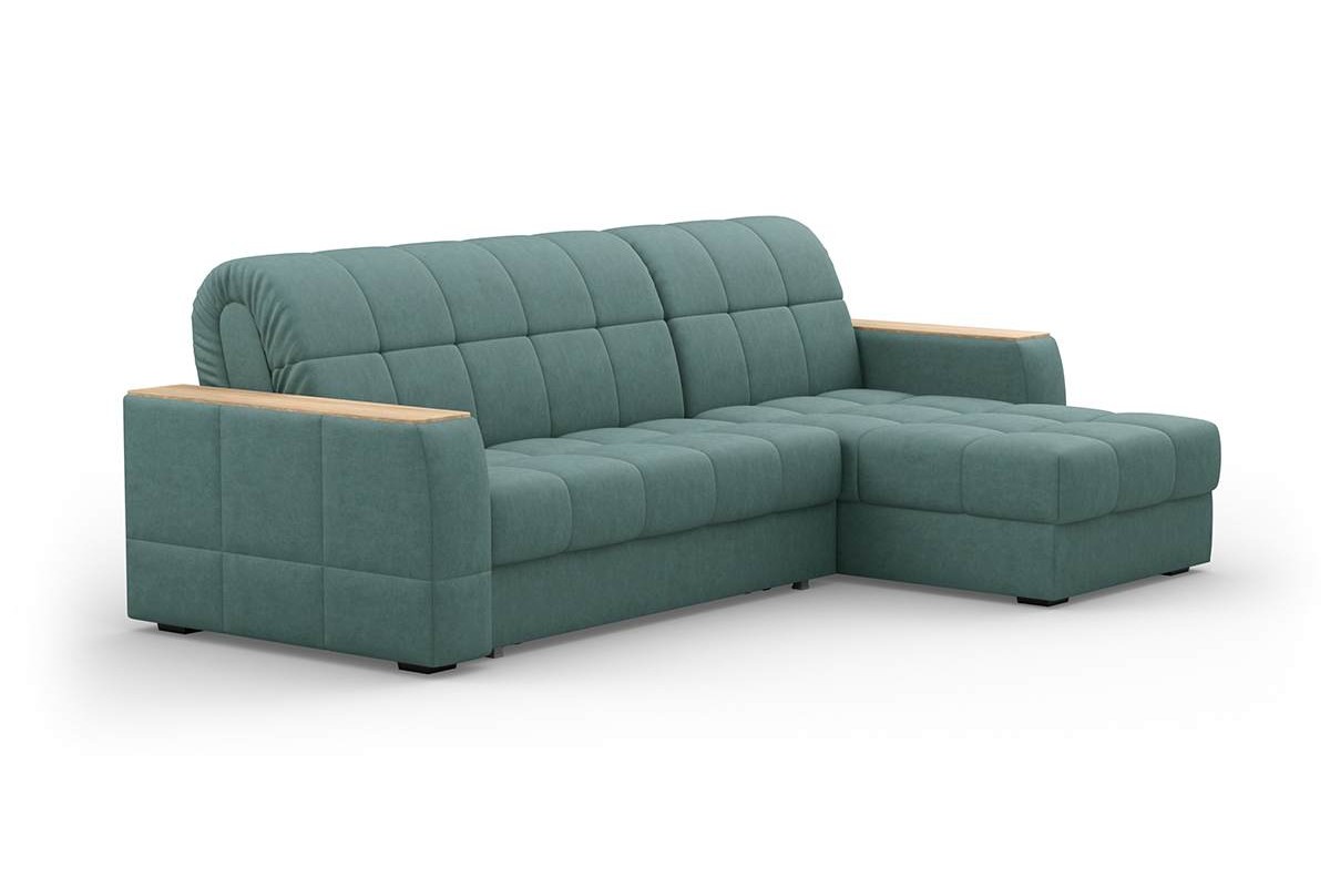 Угловой диван Коломбо 140 мини декор дуб каньон аккордеон велюр зеленый 278х94х158 металлокаркас артикул 10461073