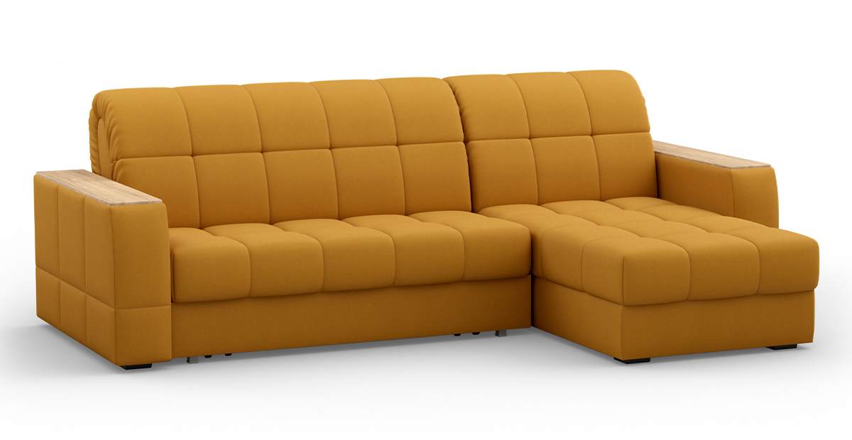 Угловой диван Коломбо 140 мини декор дуб каньон аккордеон велюр желтый 278х94х158 металлокаркас артикул 10461080