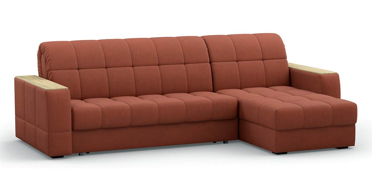 Угловой диван Коломбо 155 мини декор дуб каньон аккордеон велюр красный 291х94х158 металлокаркас артикул 10461545