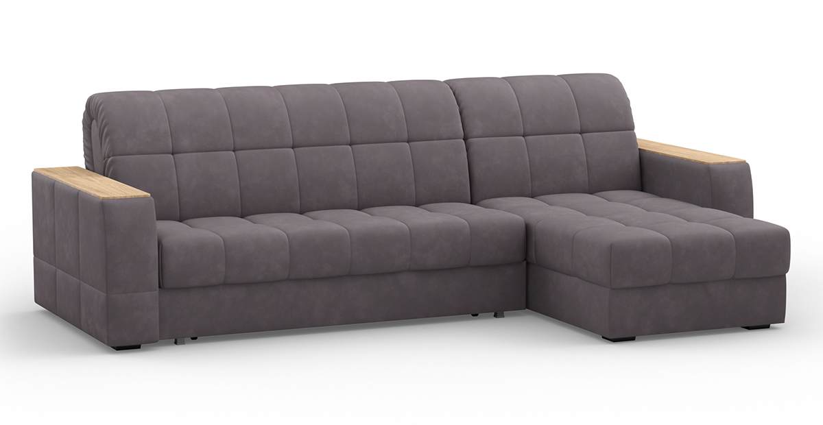 Угловой диван Коломбо 155 мини декор дуб каньон аккордеон искусственная замша серый 291х94х158 металлокаркас артикул 10461631