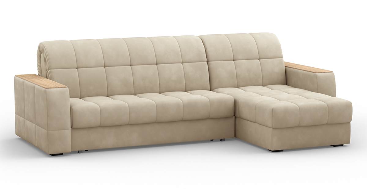 Угловой диван Коломбо 155 мини декор дуб каньон аккордеон искусственная замша бежевый 291х94х158 металлокаркас артикул 10461726