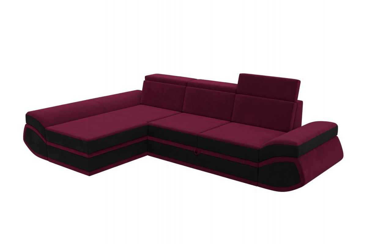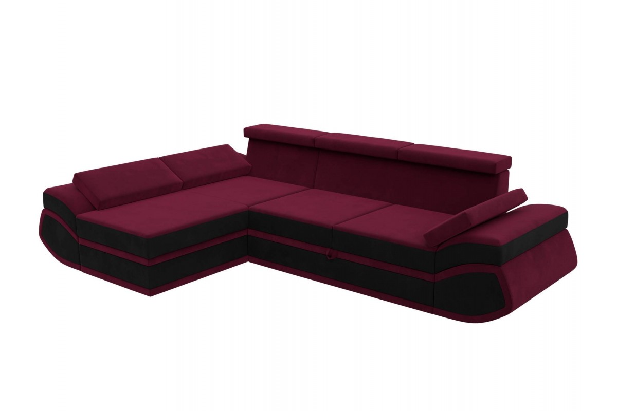 Угловой диван Лидиа-032 Левый дельфин микровельвет черный, Красный 318х88х192 лДСП, Брус, Фанера артикул 10377973