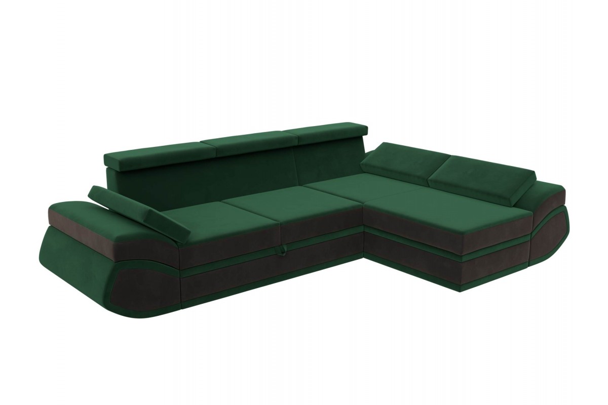 Угловой диван Лидиа-032 Правый дельфин велюр коричневый, Зеленый 318х88х192 лДСП, Брус, Фанера артикул 10377955